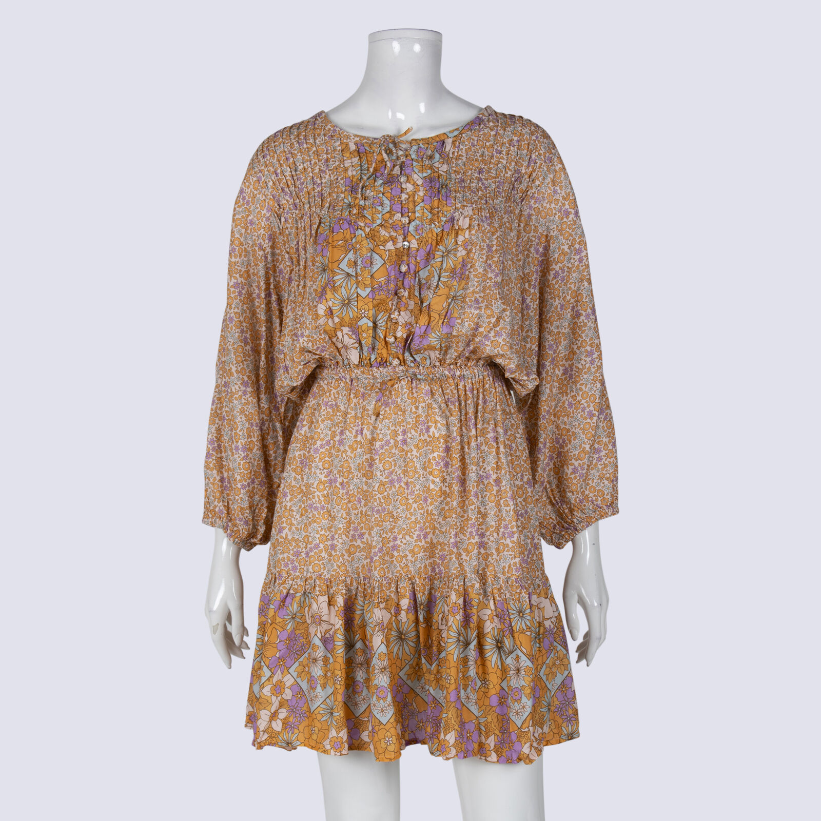 Jaase LS Pintuck Mini Dress With Drawstring Waist