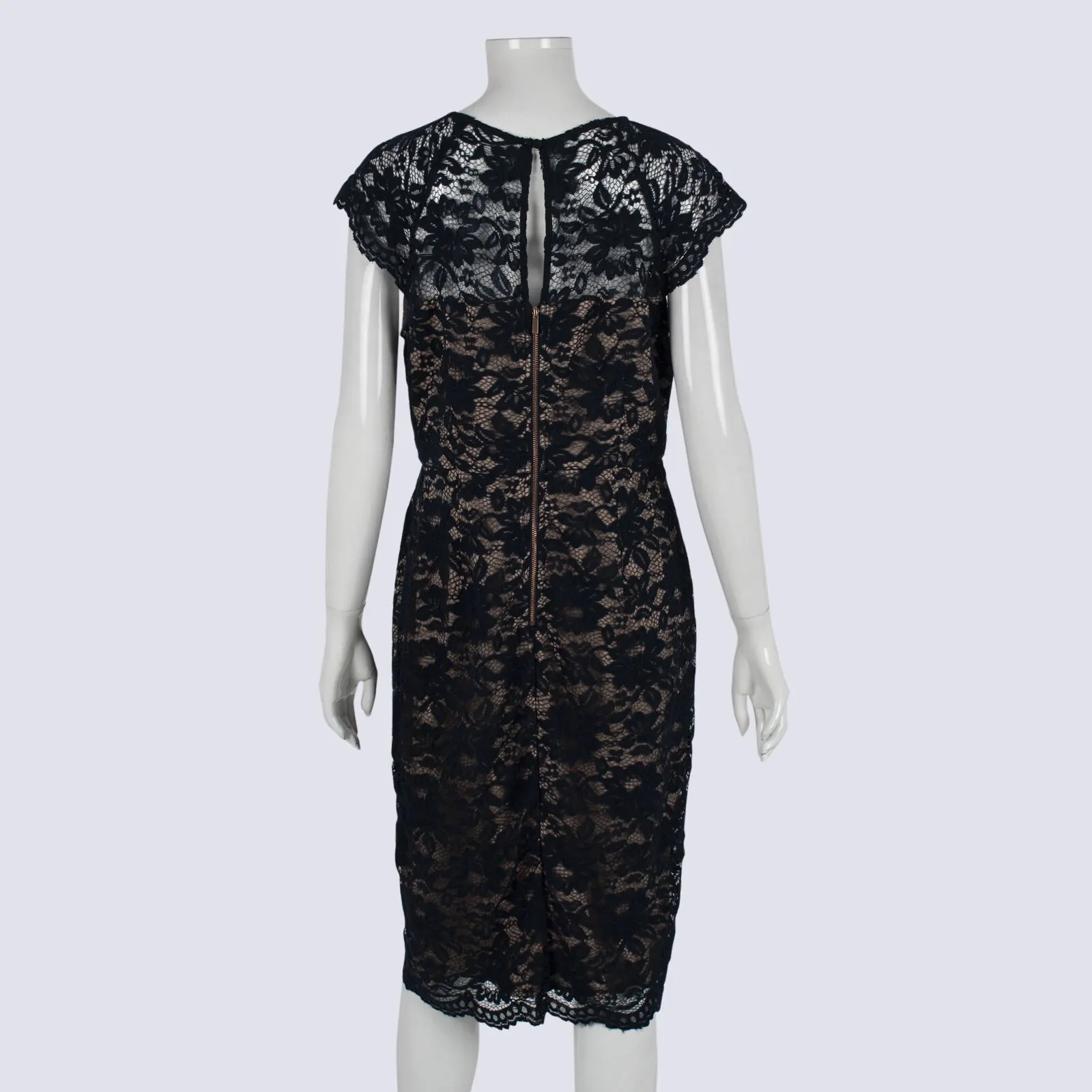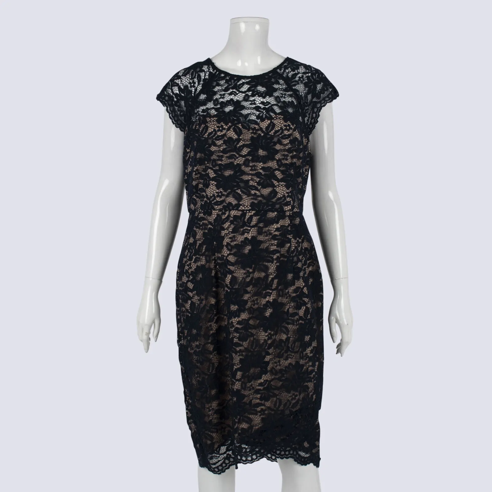 Jacqui E Navy Dress With Lace Overlay