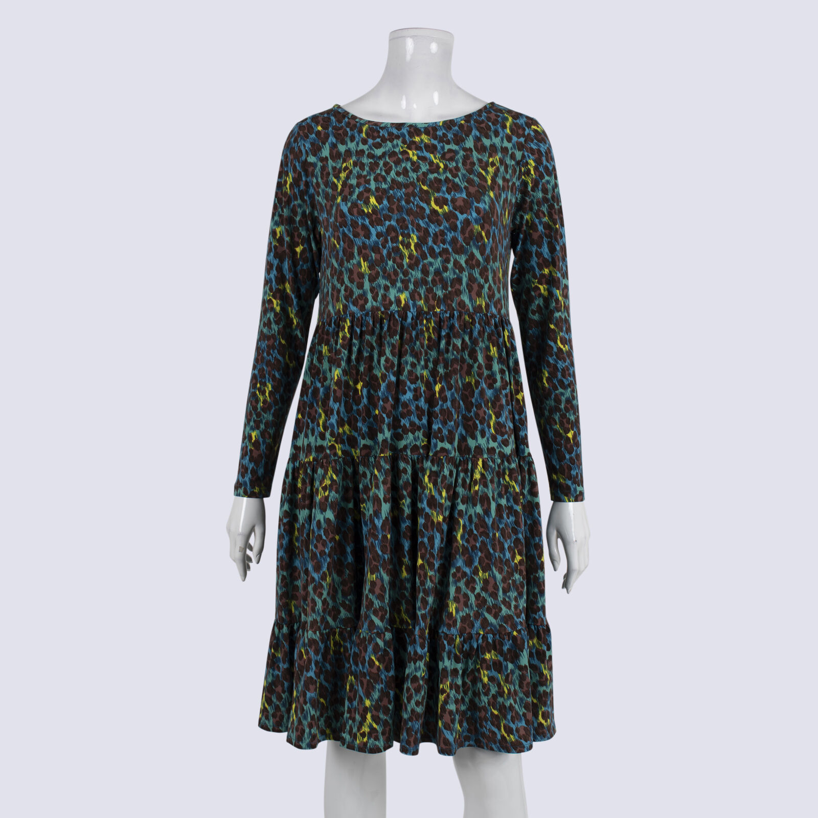 Leona Edmiston LS Animal Print Tiered Dress
