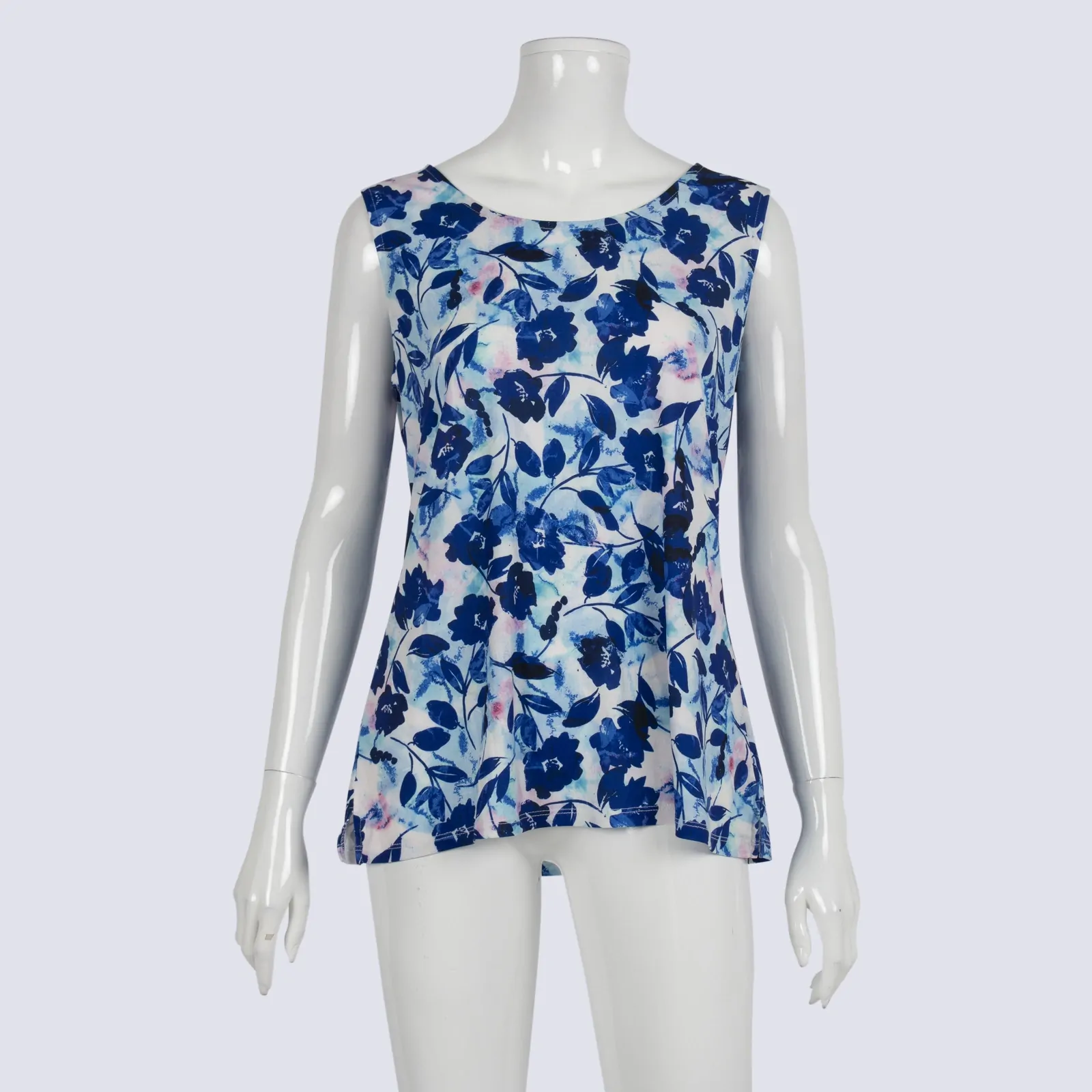 Liz Jordan White & Blue Floral Stretchy Tank