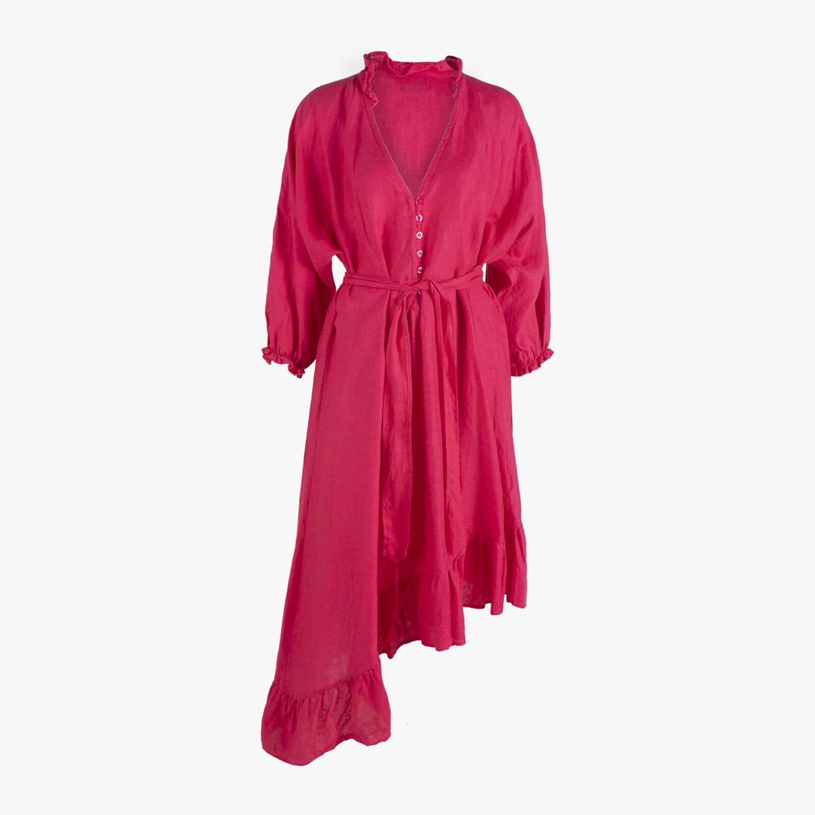 LJC Ava LS Linen Dress With Tie Waist