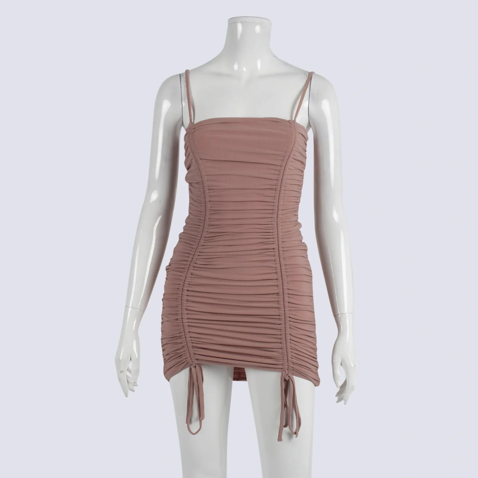 Lulalot Pink Ruched Drawstring Mini Dress