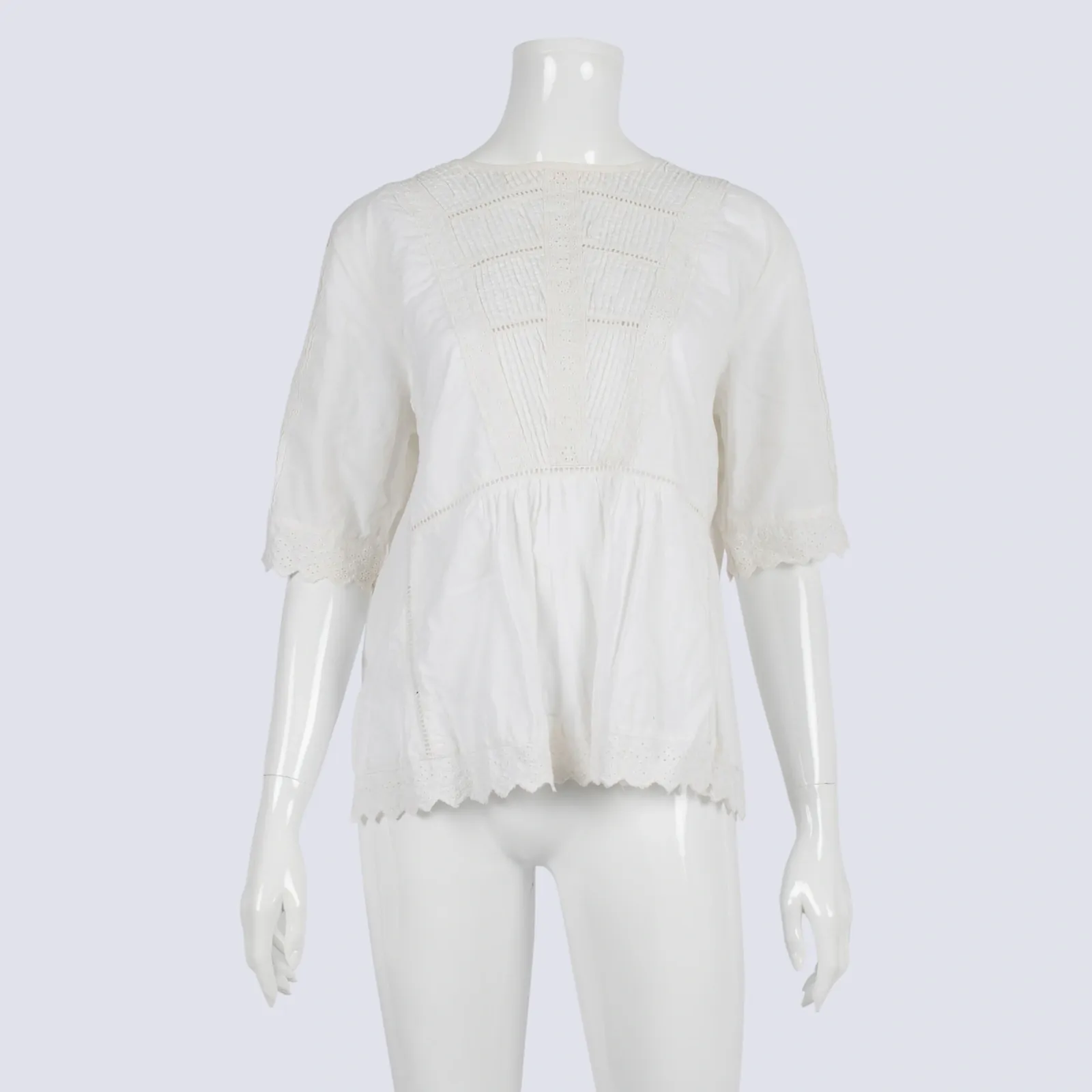 Manteau Noir Cream Lace Detailed Short Sleeve shirt
