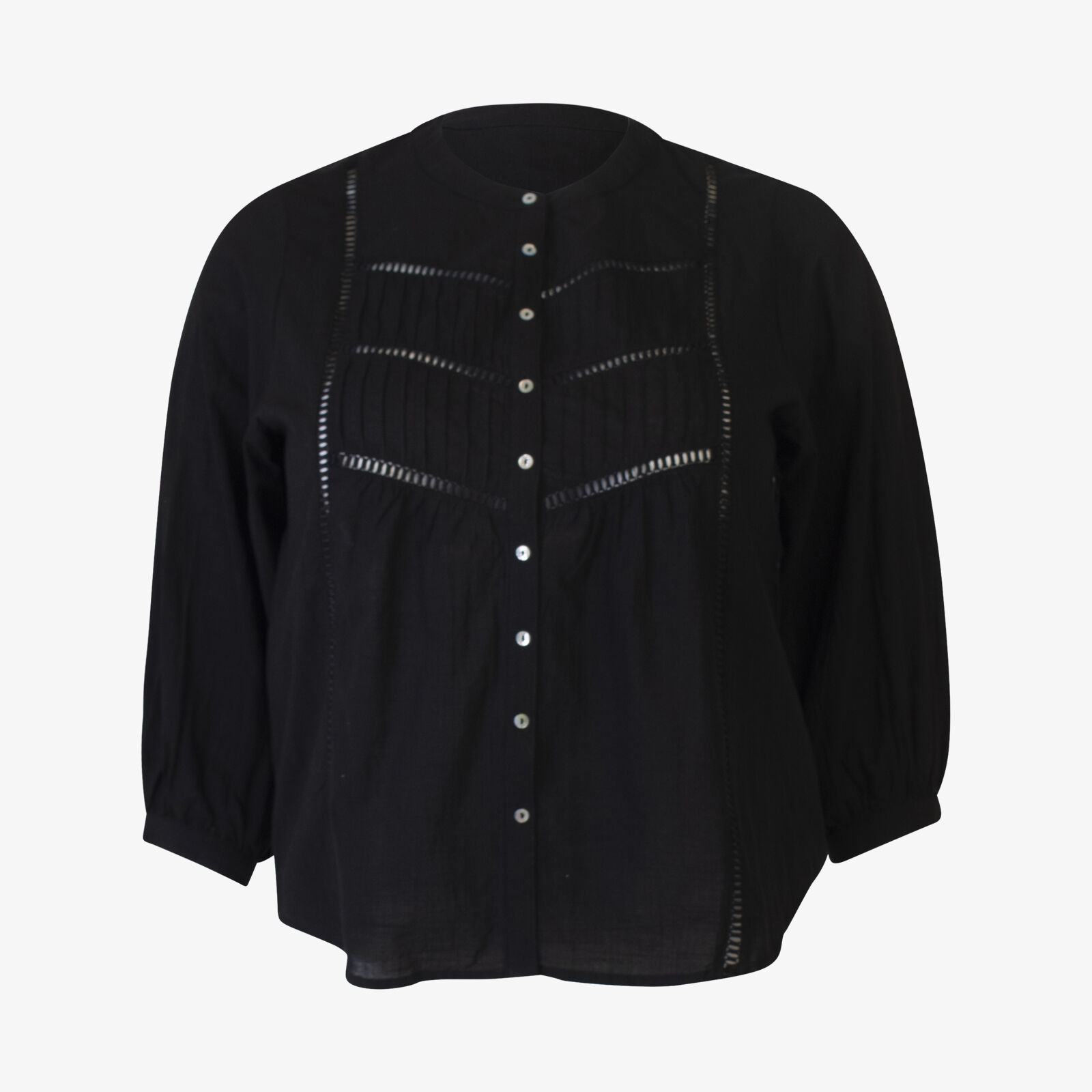 Maye Black Puff Sleeve Cotton Blouse