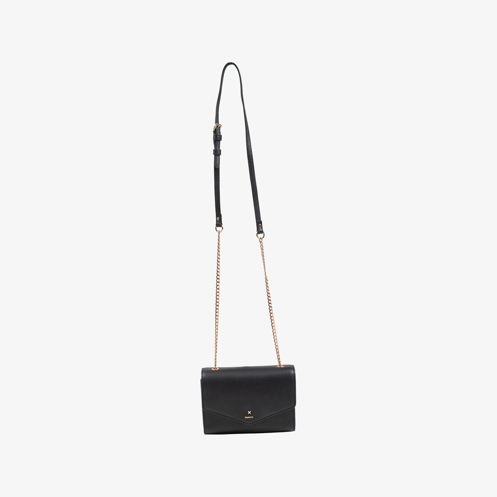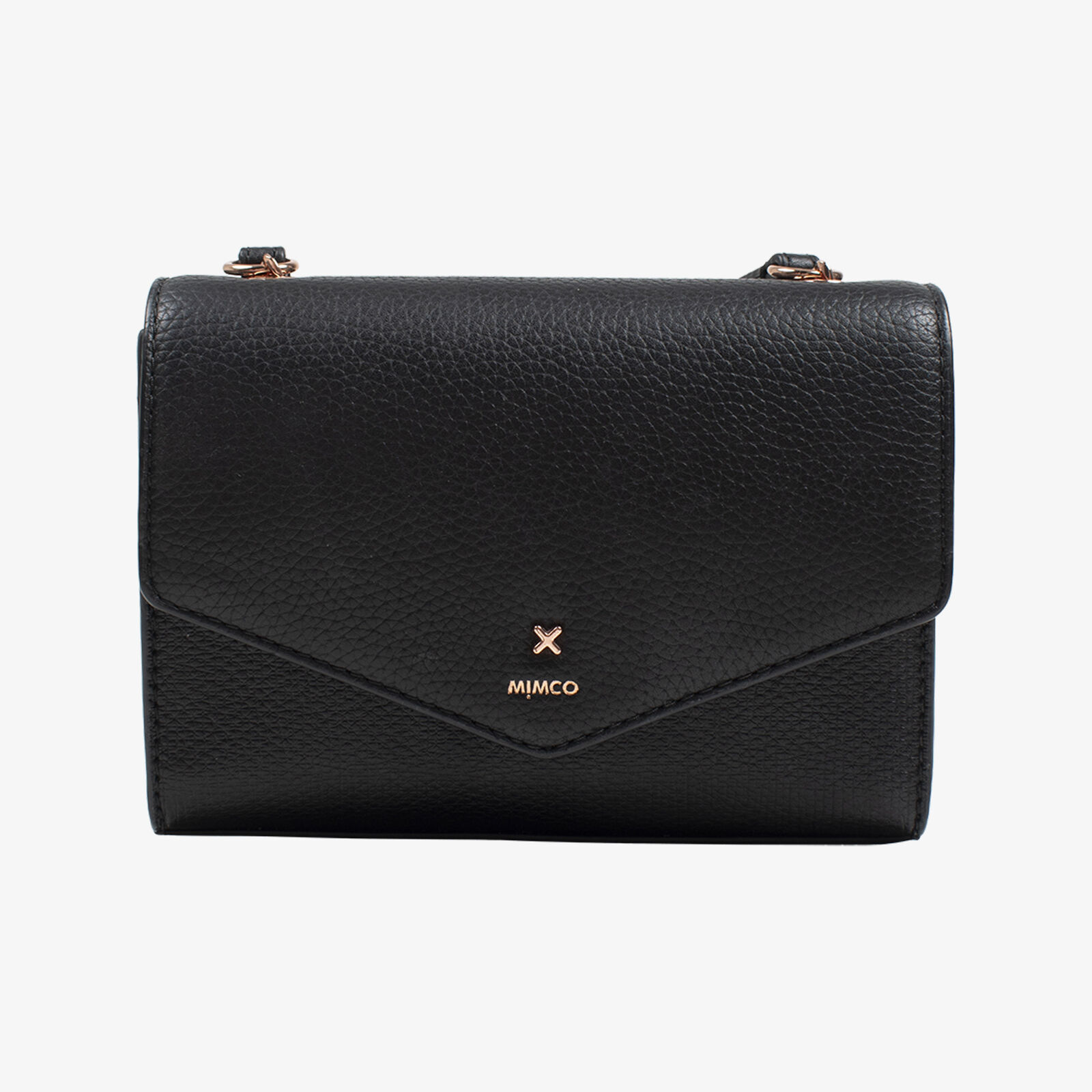 Mimco Black Crossbody Bag With Rose Gold Chain Strap