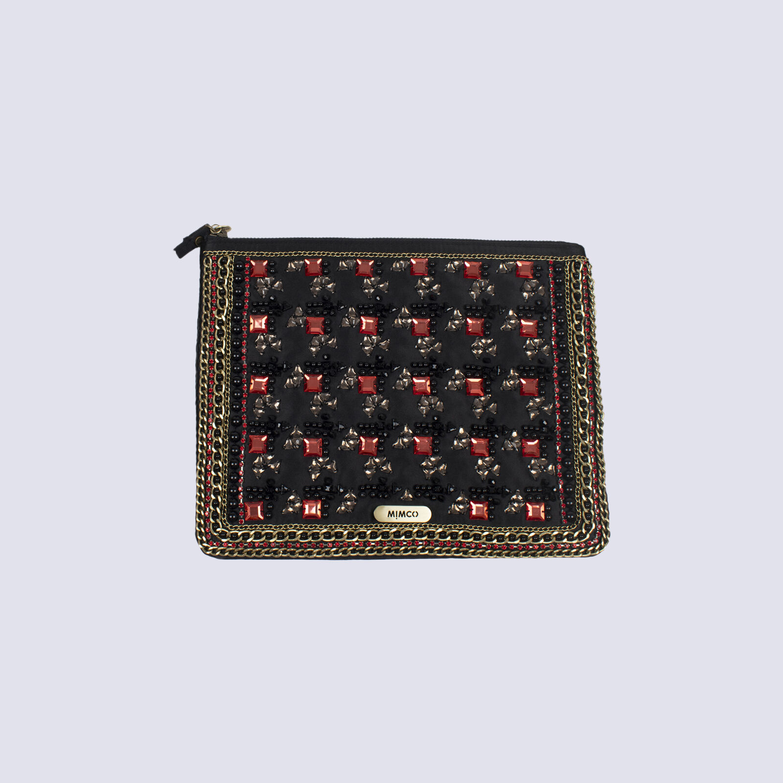 Mimco Large Black Beaded and Bejewelled Clutch