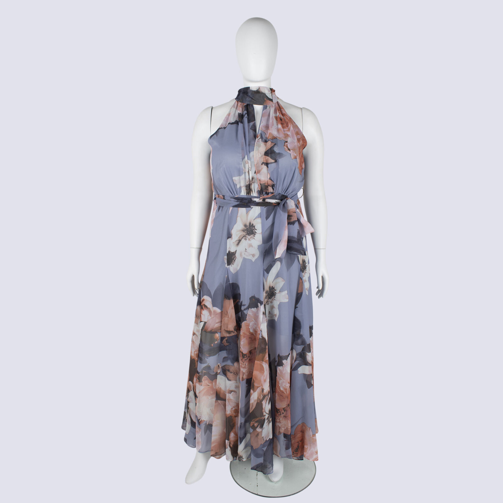 Montique Flowy Halterneck Maxi Dress With Tie Waist