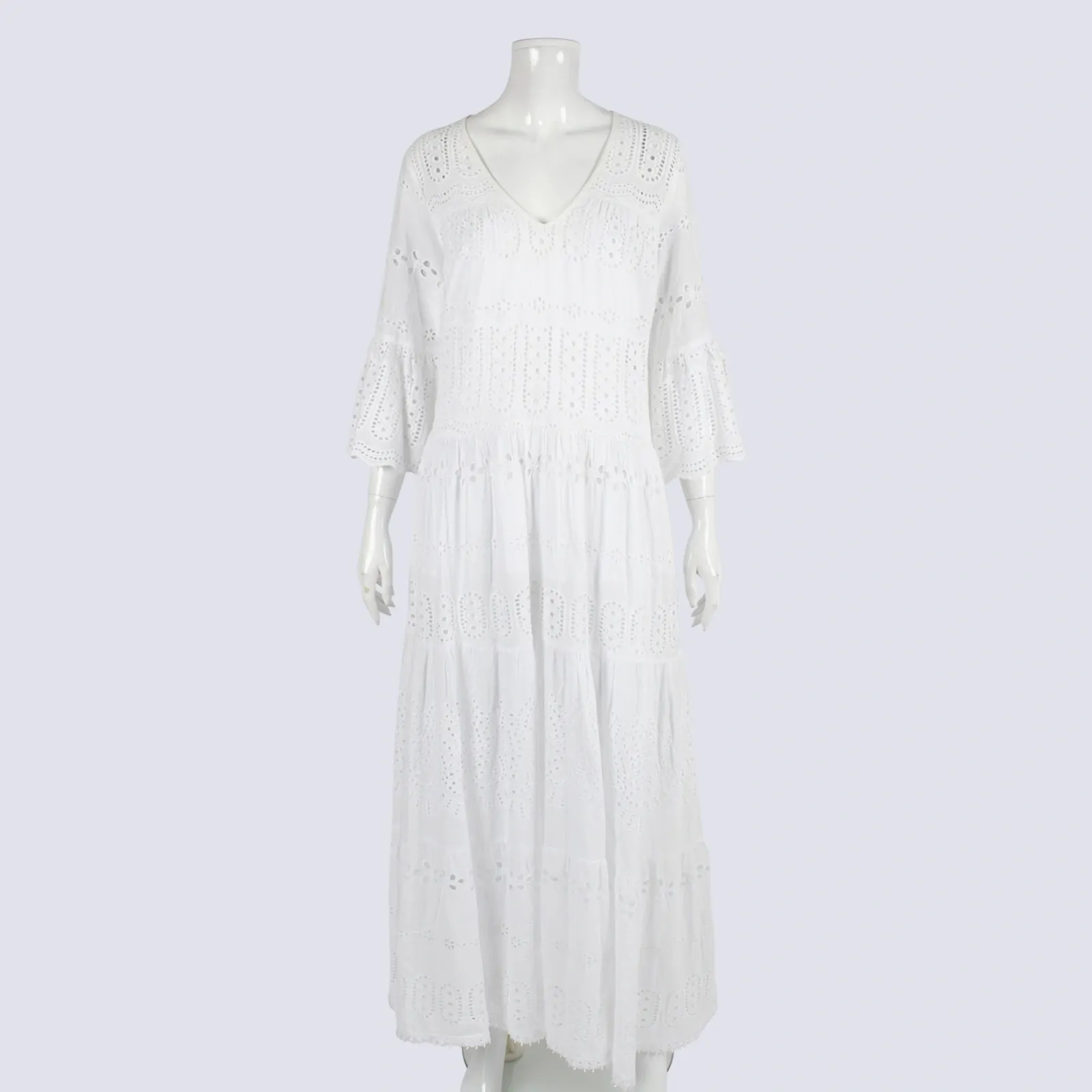 Naudic White Broderie Anglaise Tiered Cotton Dress