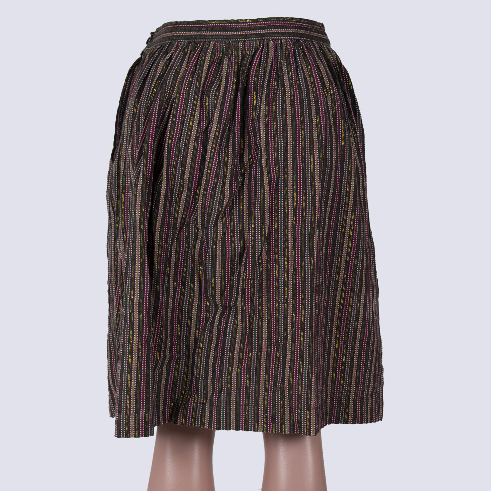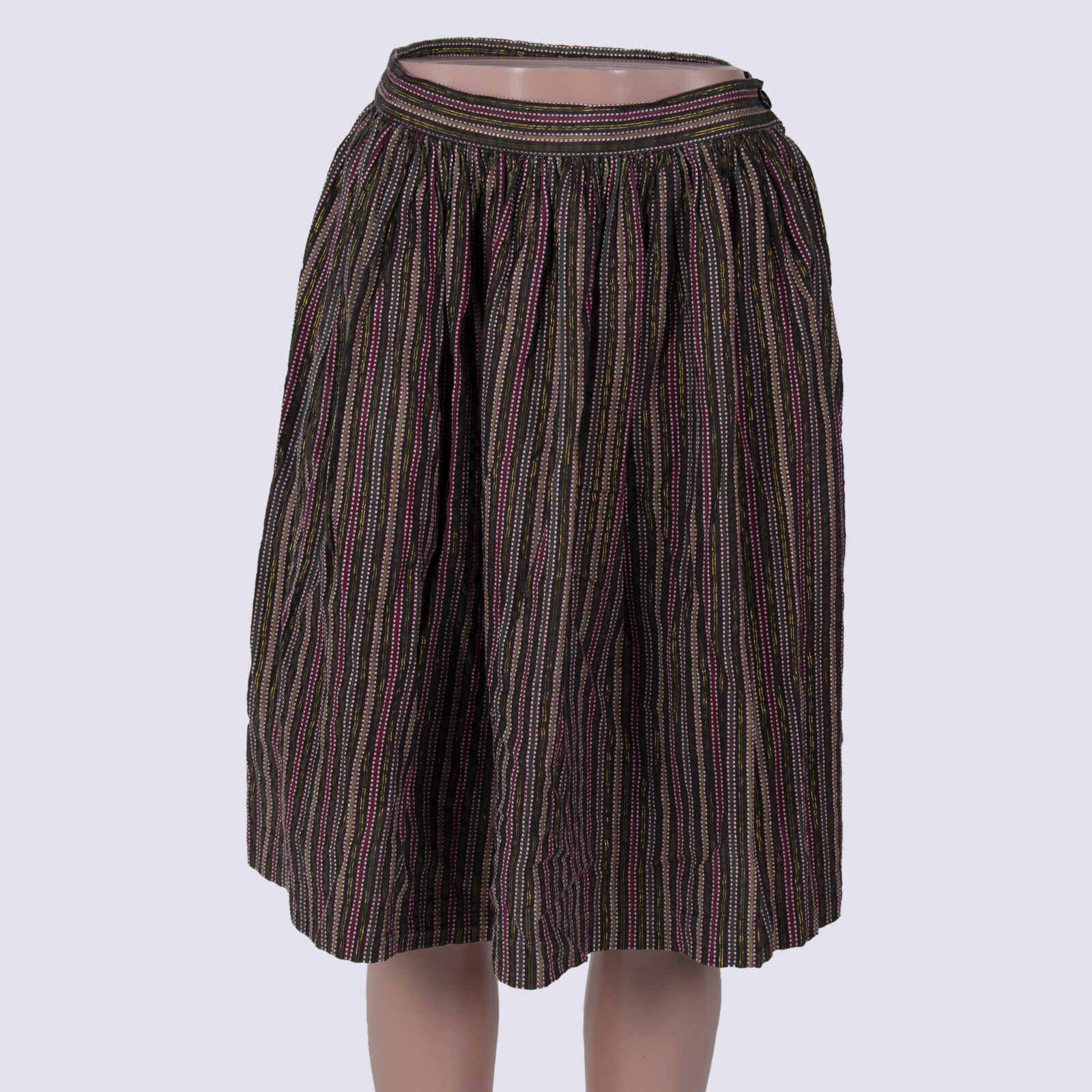 Neo Vintage Cotton Metallic Stripe A-Line Midi Skirt