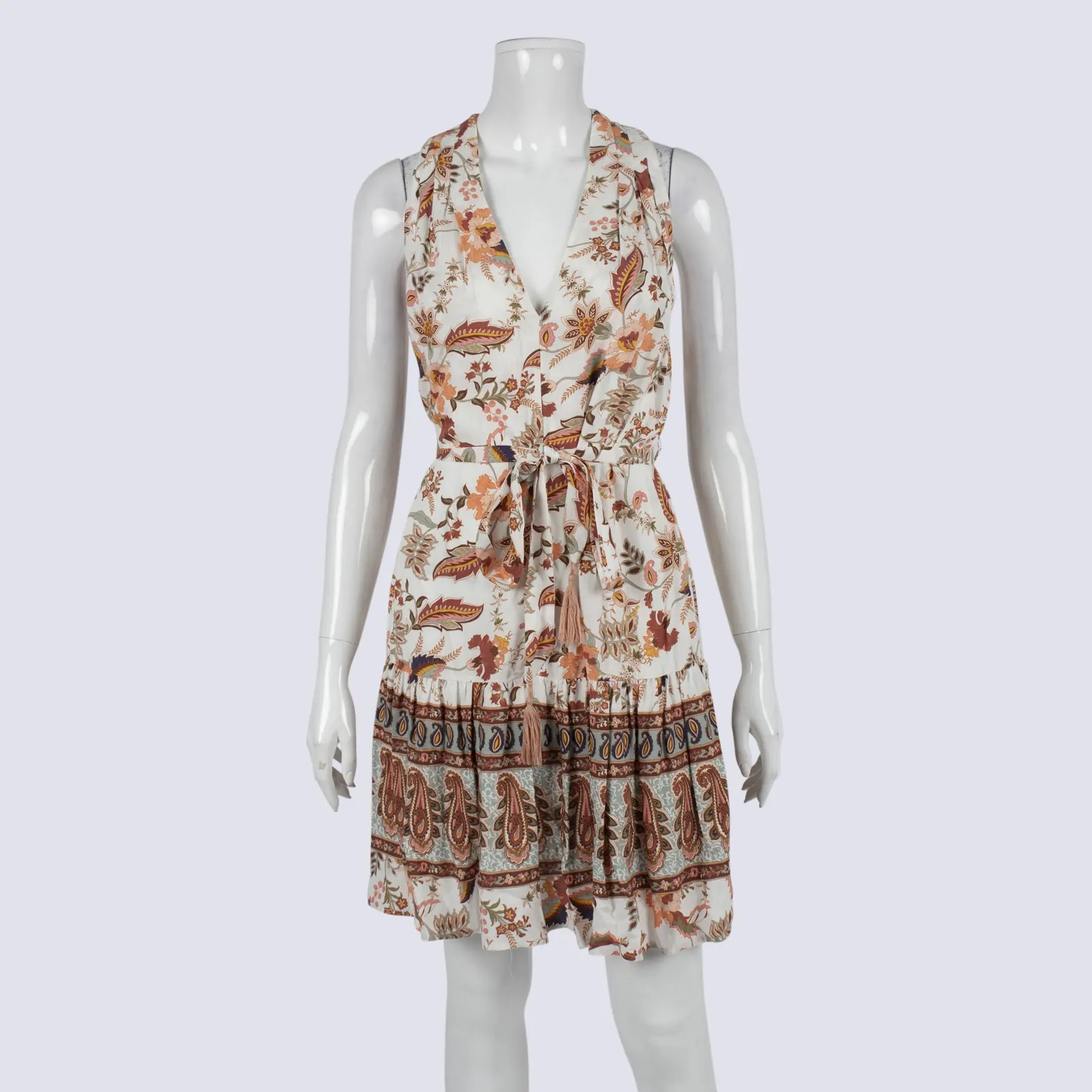 NOT White Closet Sleeveless Paisley Dress With Tie Waist