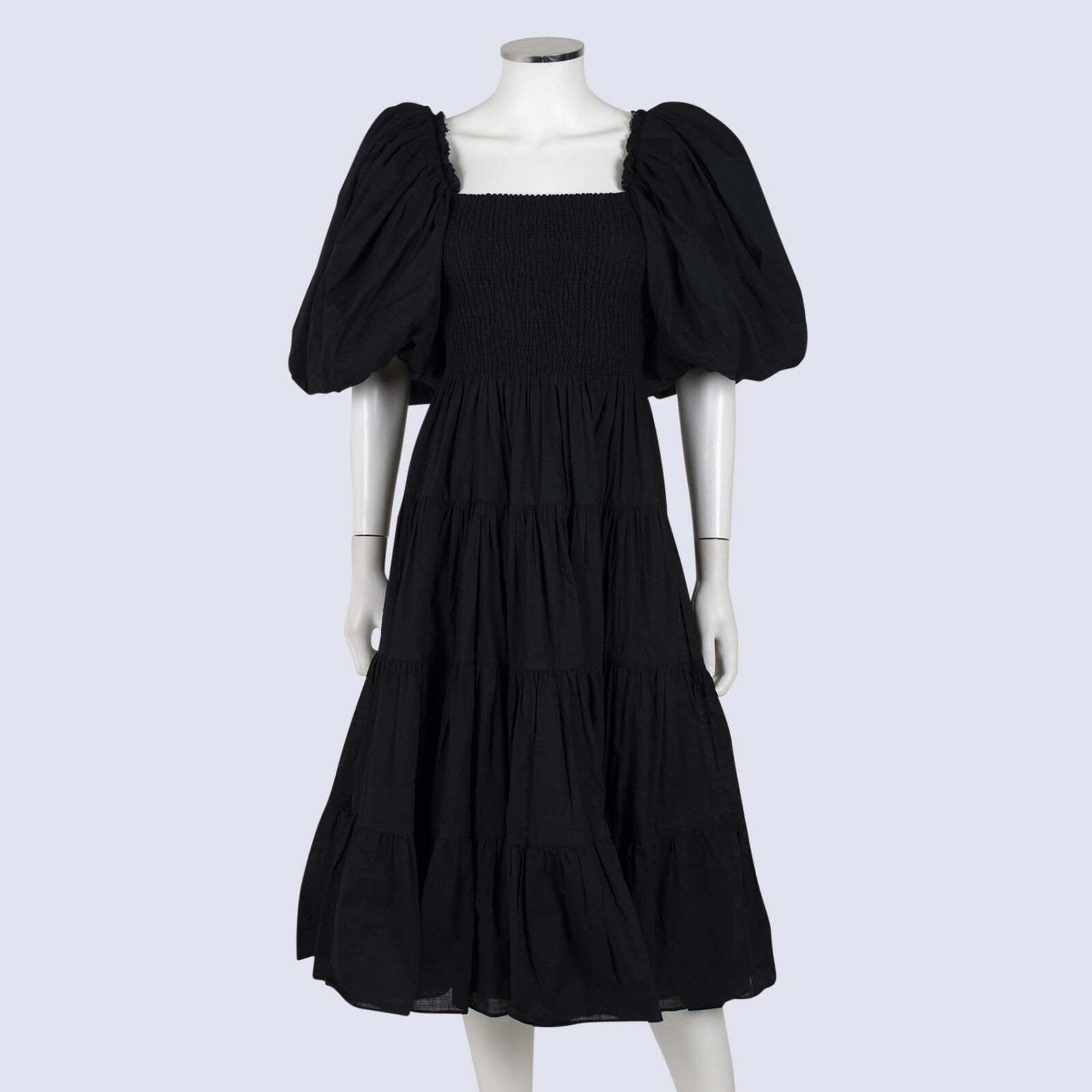 NWOT Aje Black Casa Puff Sleeve Shirred Bodice Dress