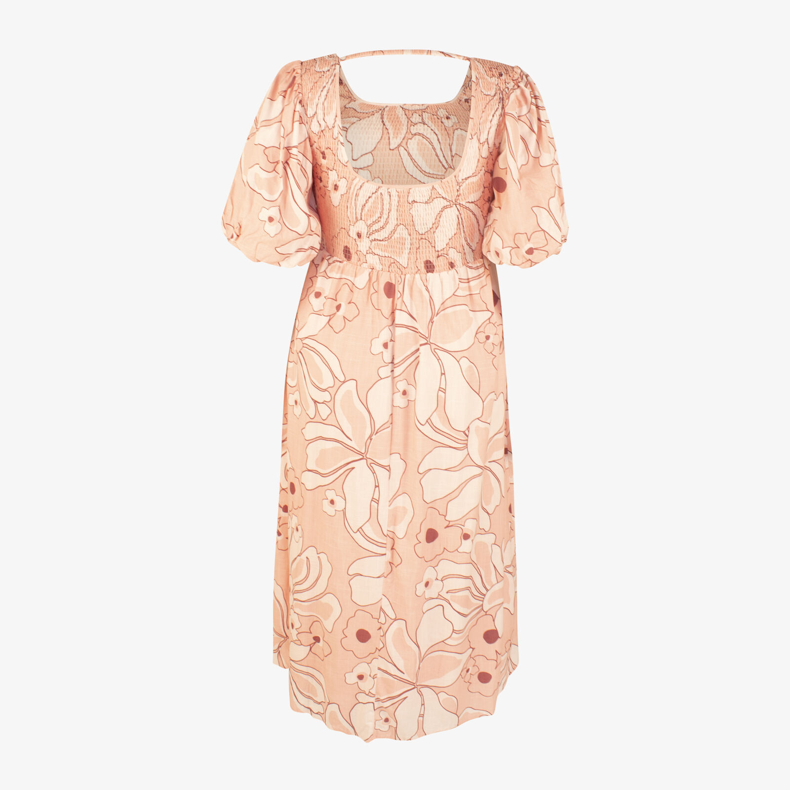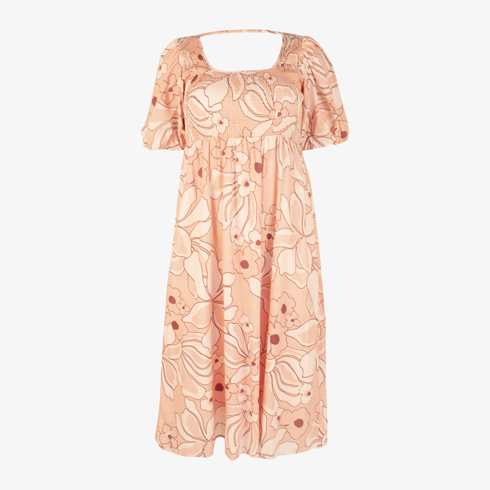 NWOT Girl And The Sun Linen Maxi Dress With Shirred Bodice And Puff Sleeves