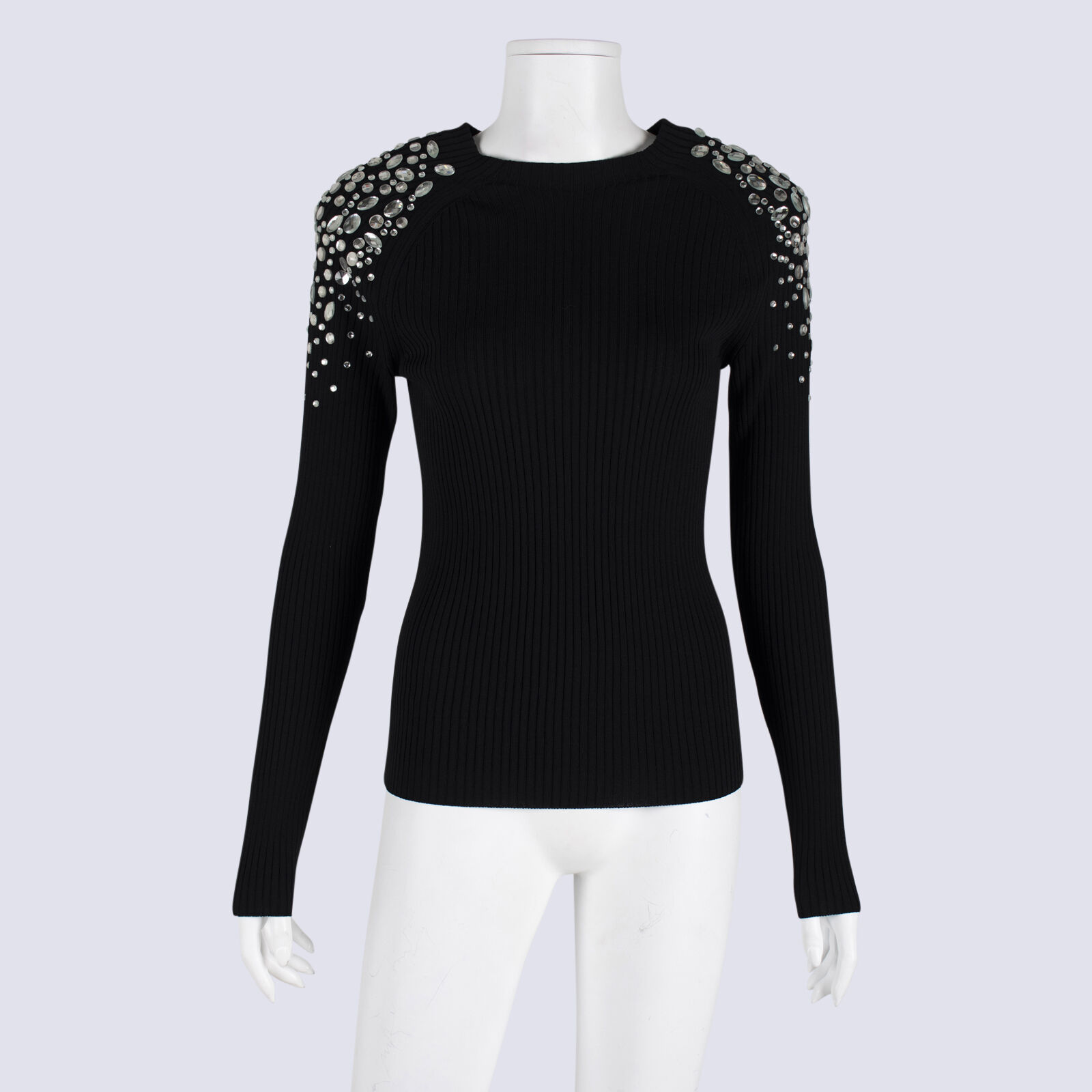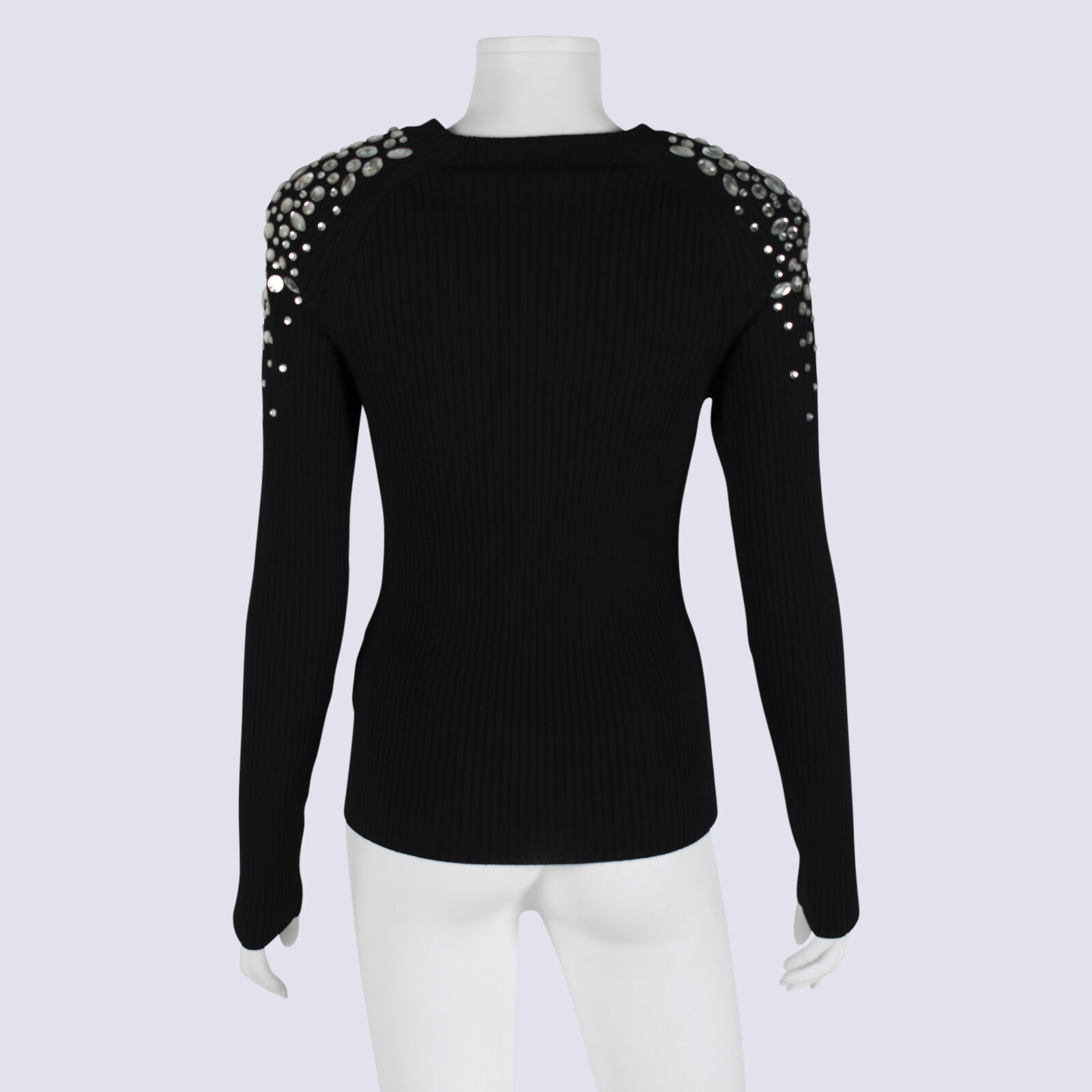 NWOT Sass & Bide Black Ribbed Knit Top With Gemstone Embellishment
