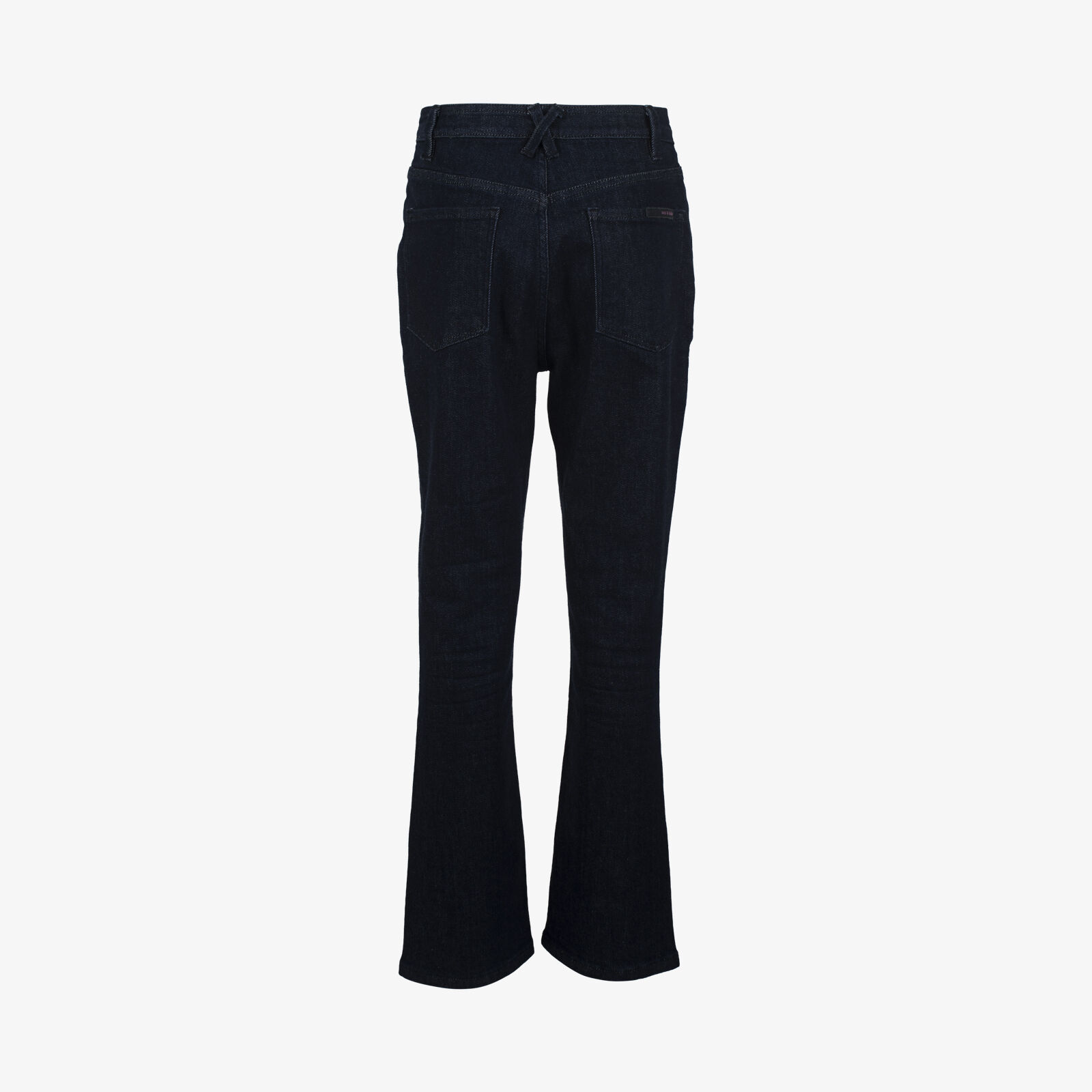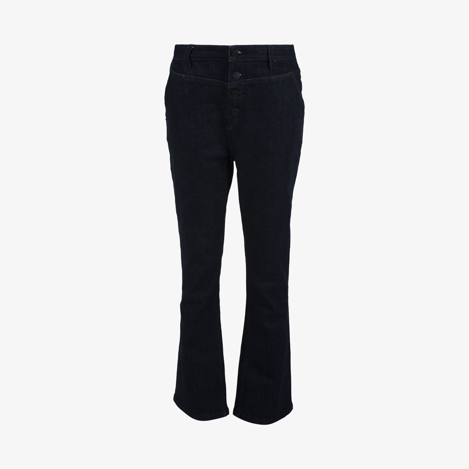 High-rise waist with a slim fit through the thigh and a subtle flare (kick) at the cropped hem