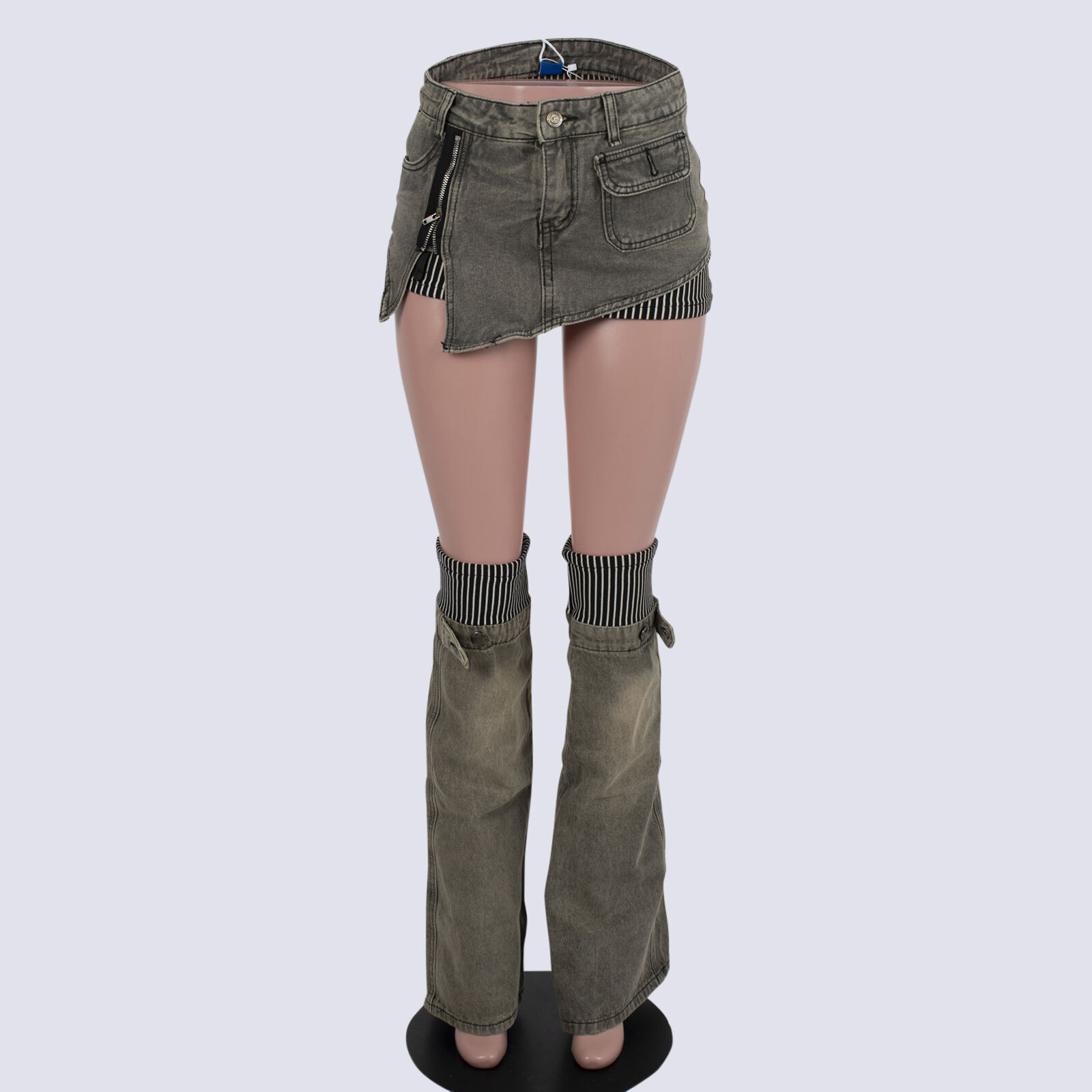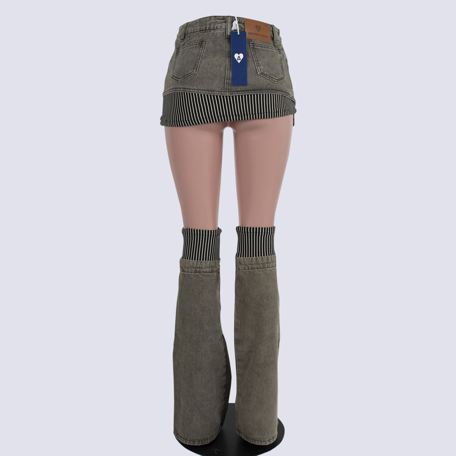 NWT Aelfric Eden Patchwork Denim Mini Skirt With Leg Warmers