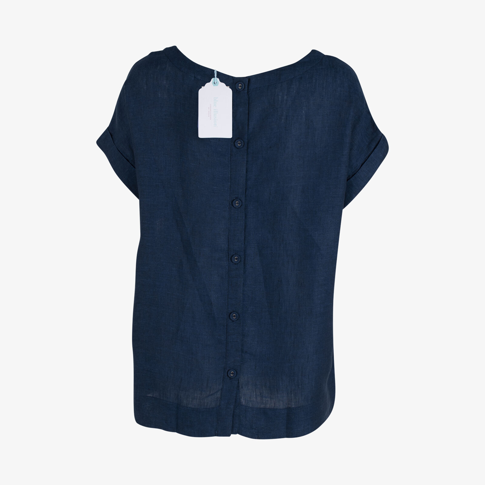 NWT Blue Illusion Navy Delave Linen Short Sleeve Top