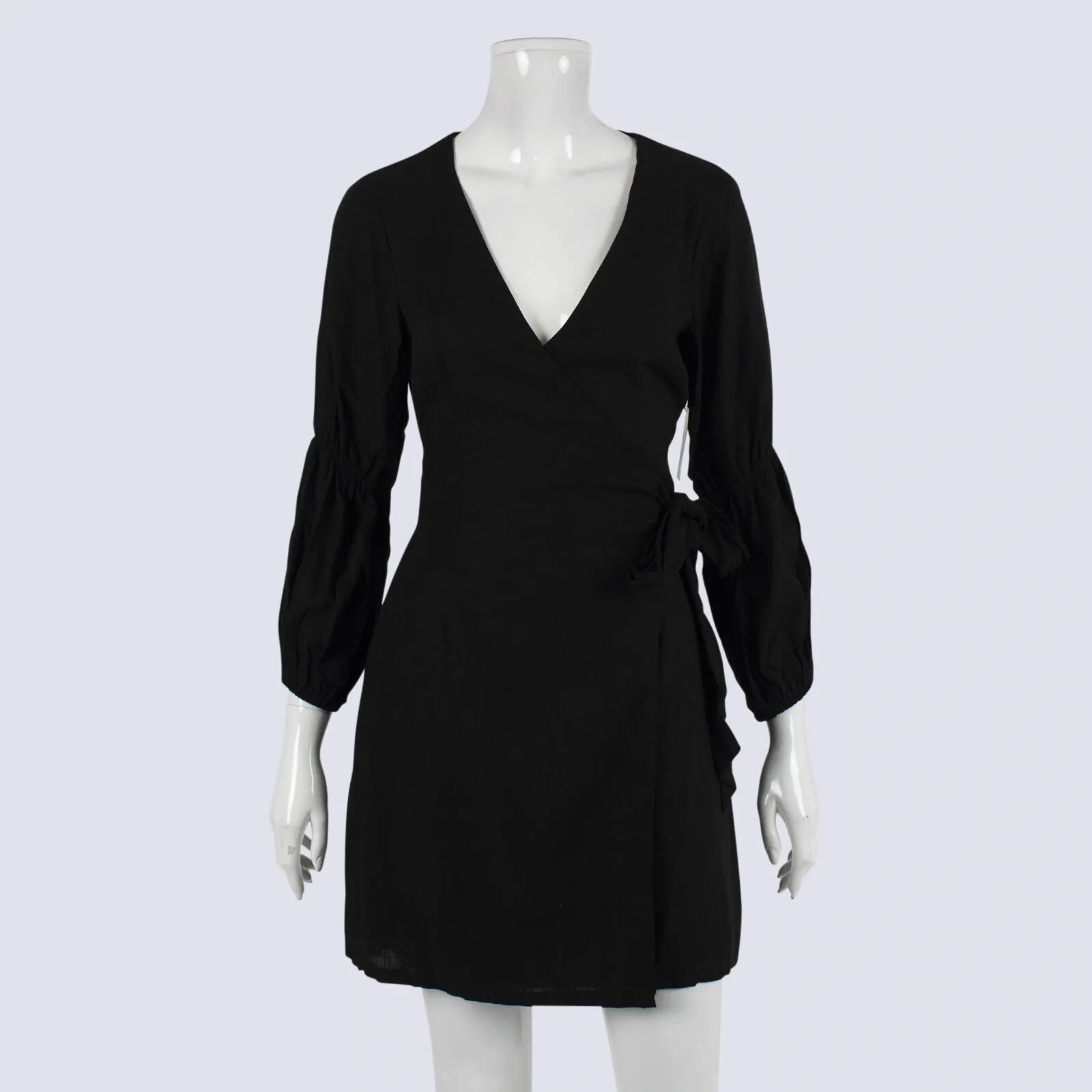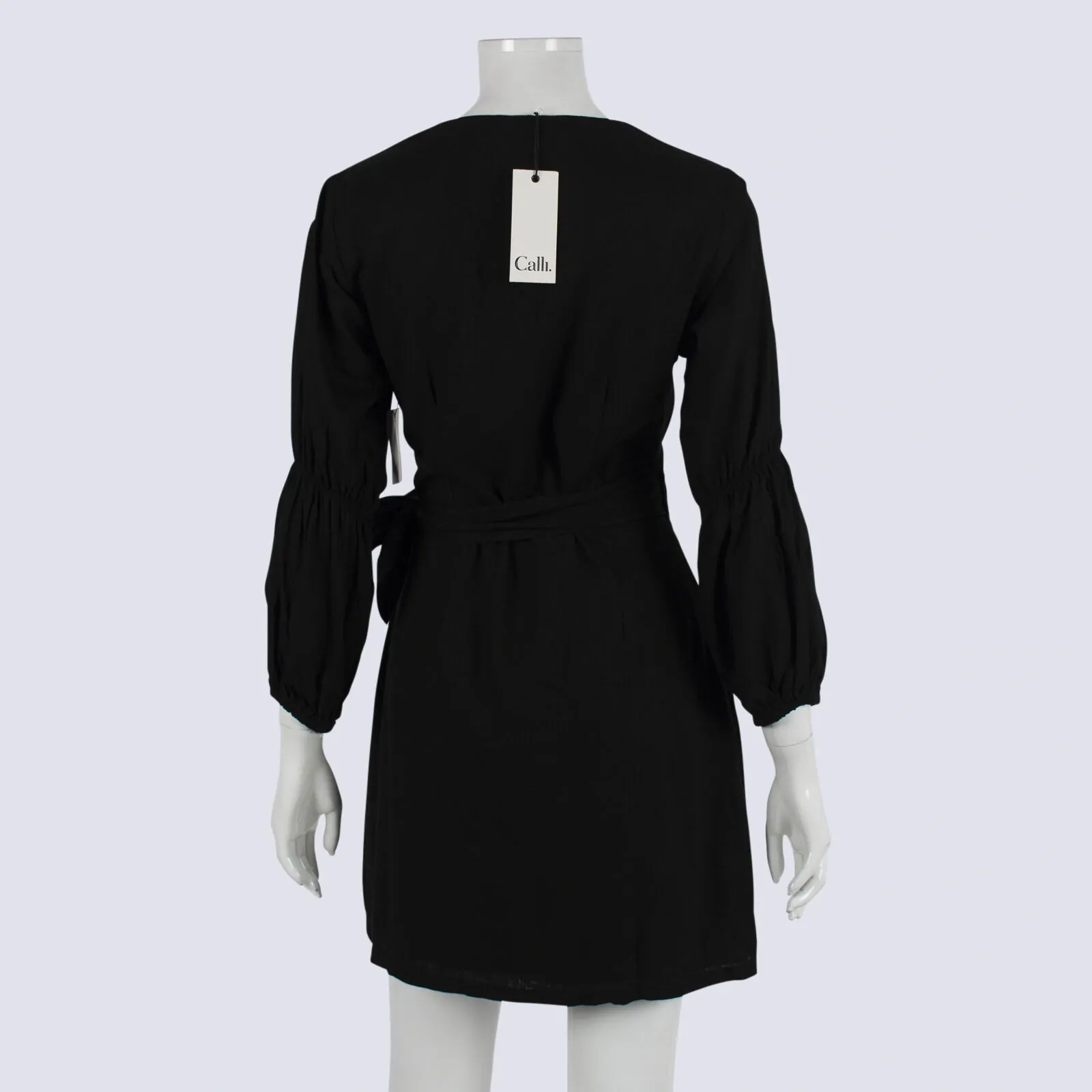 NWT Calli Tara Black Linen Blend Wrap Dress