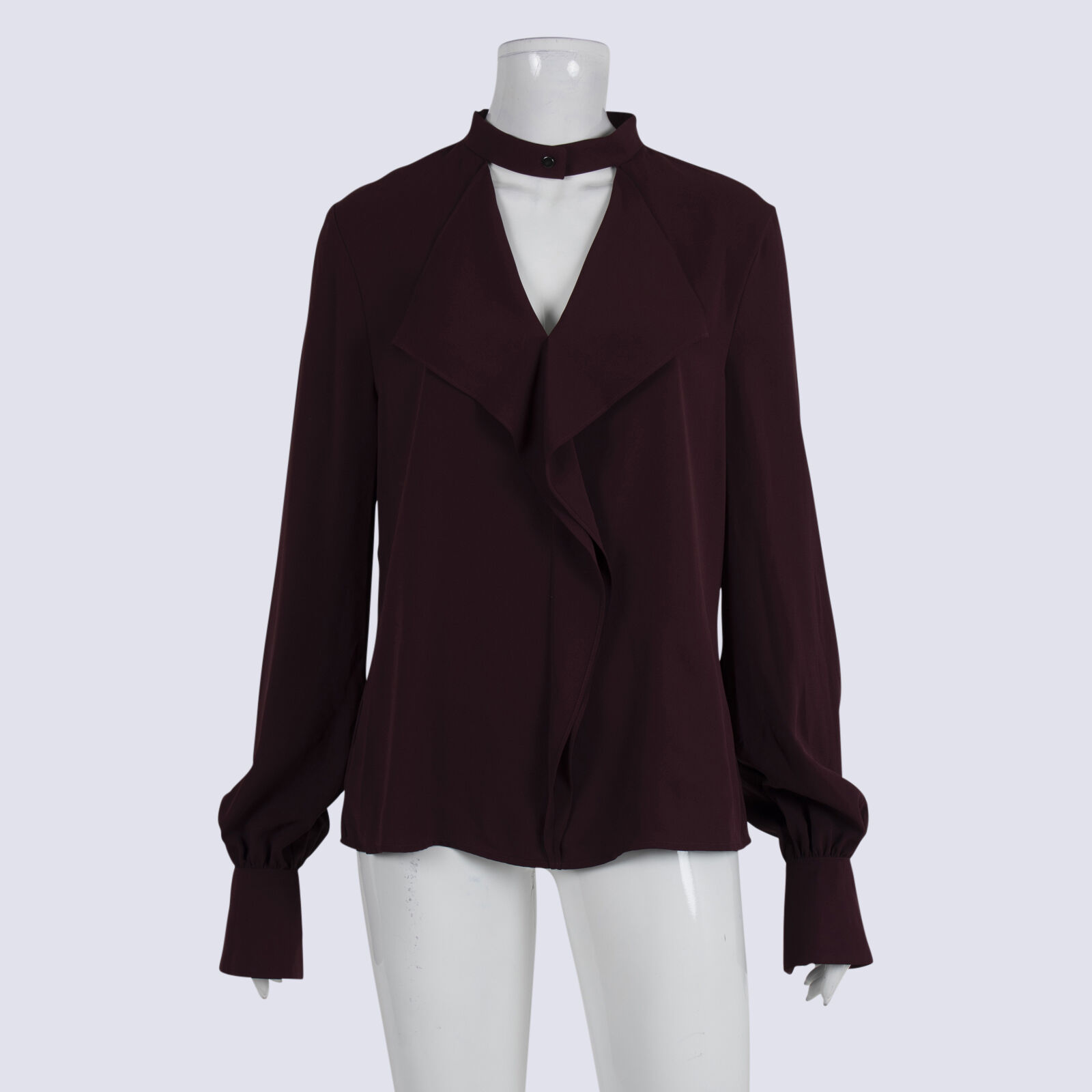 NWT CUE Plum LS Front Frill Blouse