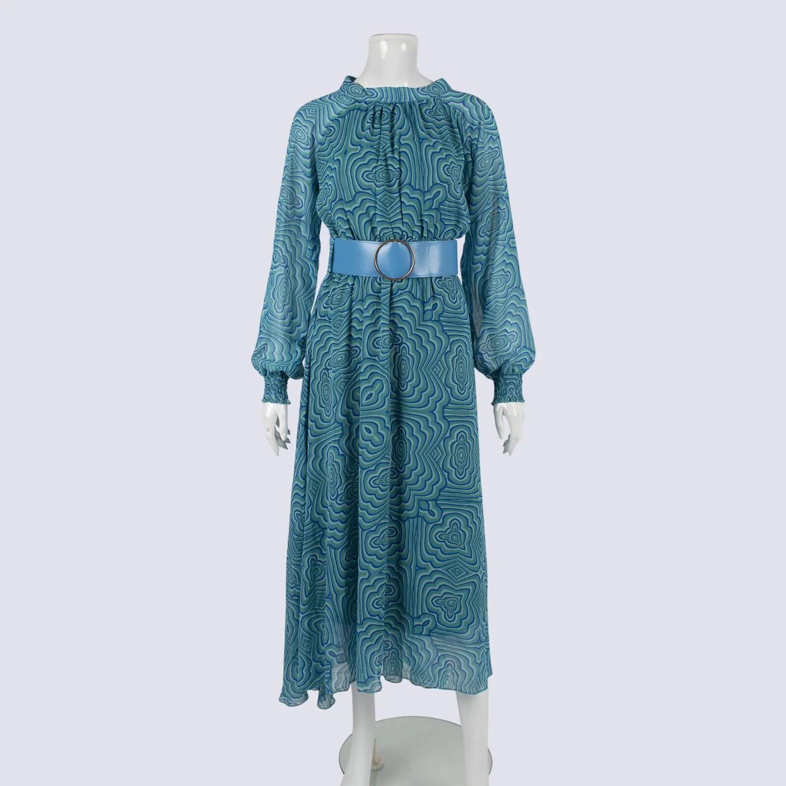 NWT Fame LS Swirl Print Maxi Dress With belt