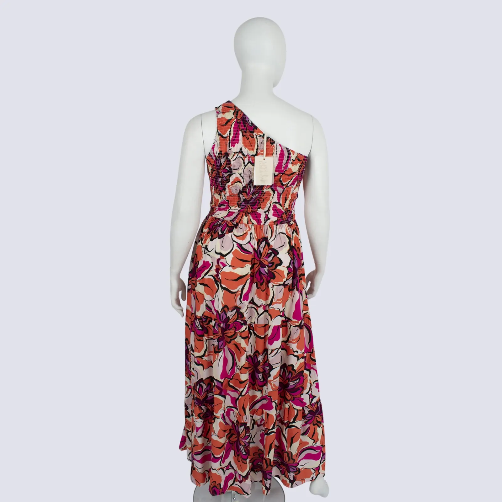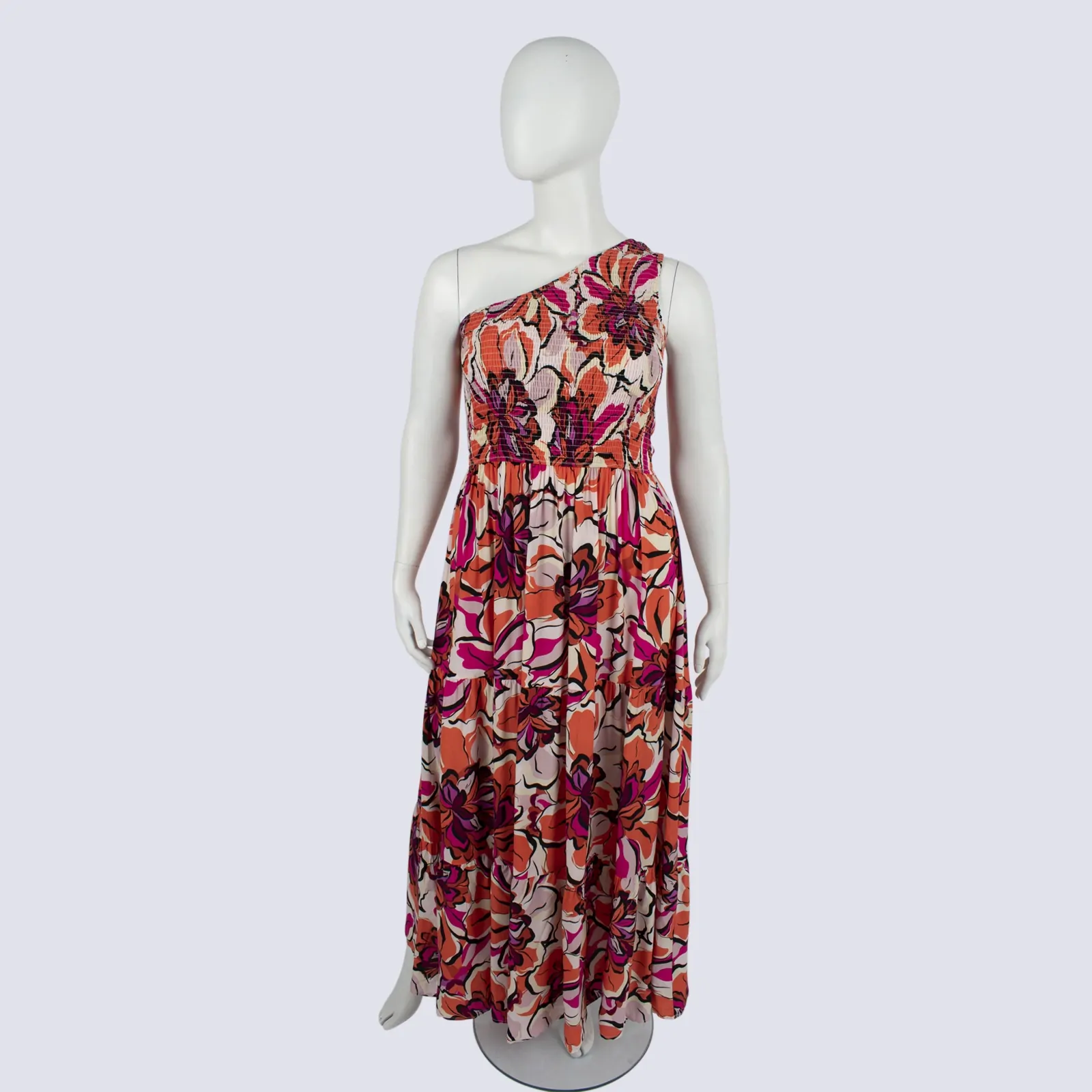NWT Floral One Shoulder Dress With Shirred Bodice