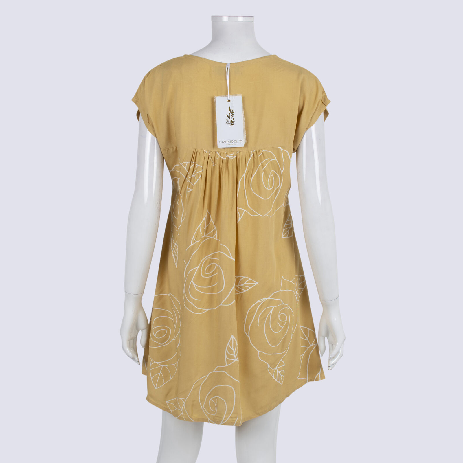 NWT Frank & Dollys Pale Yellow Rose Print Mini Dress