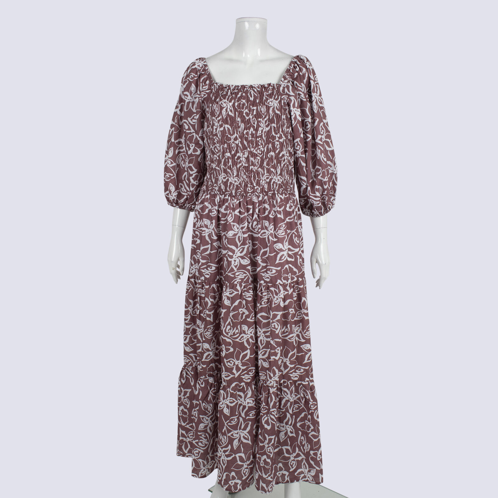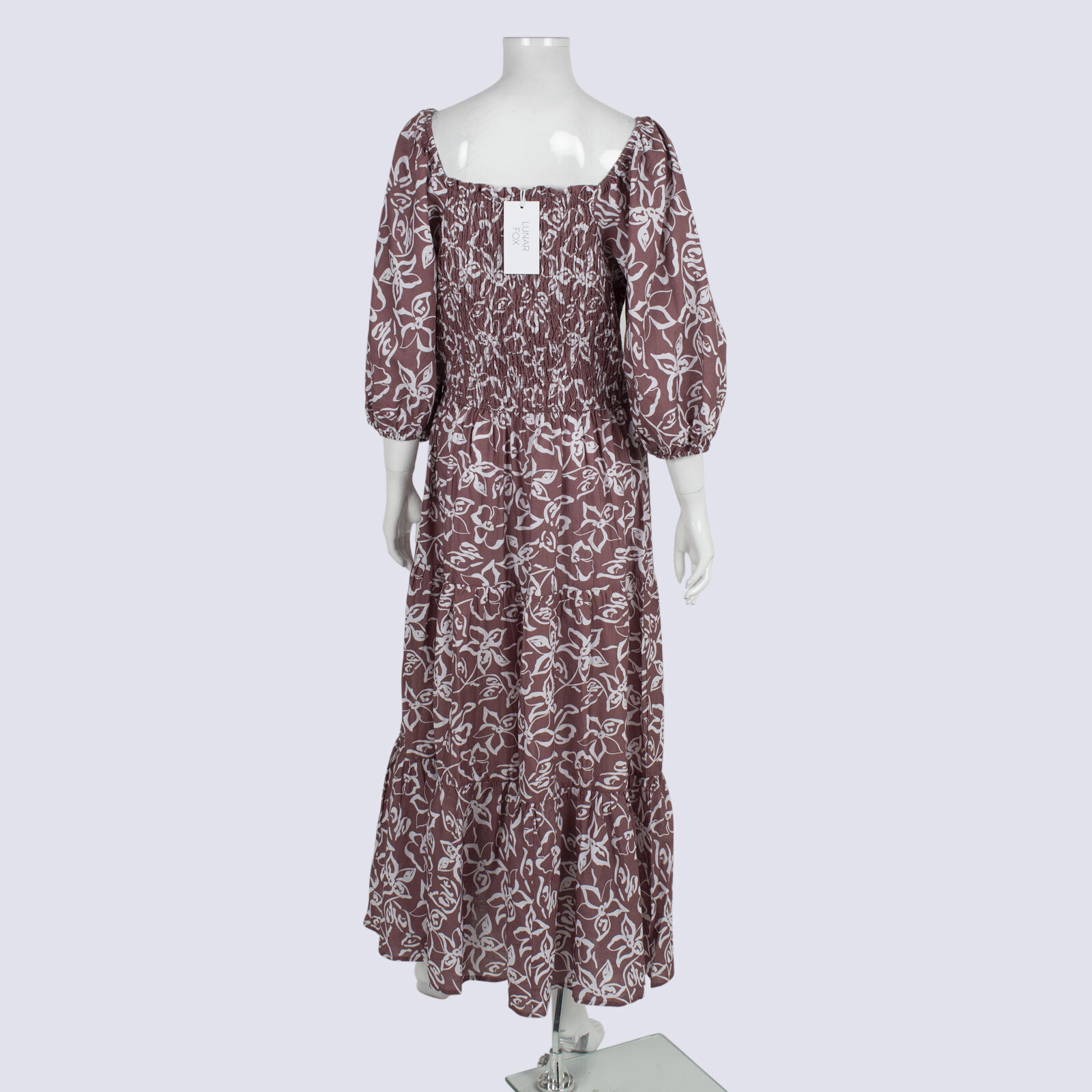 NWT Lunar Fox Sangria Tiered Puff Sleeve Dress With Shirred Bodice