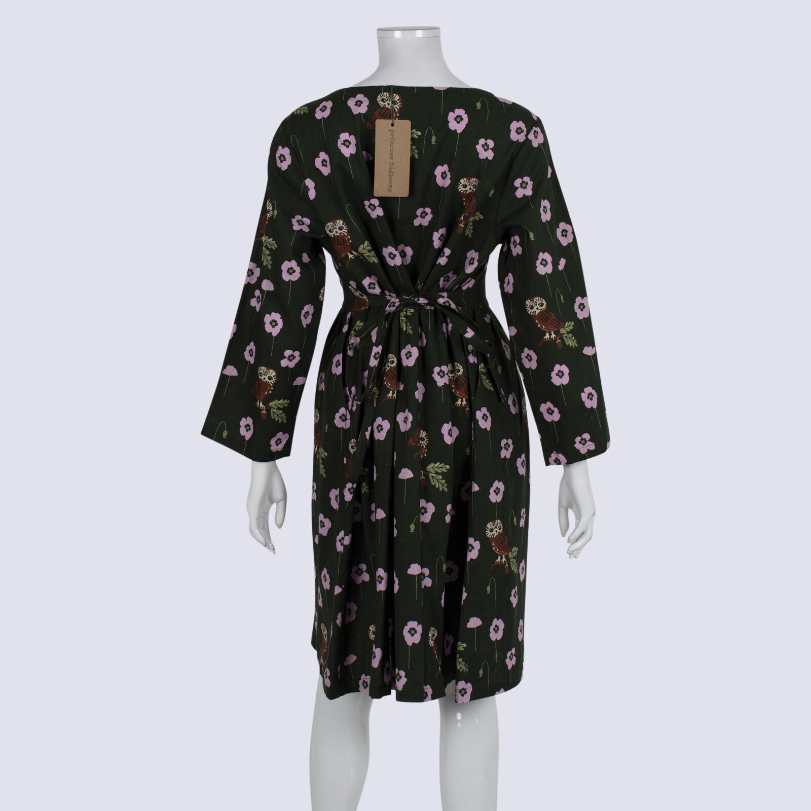 NWT Princess Highway Linen Poppy Owl Dress With Ties