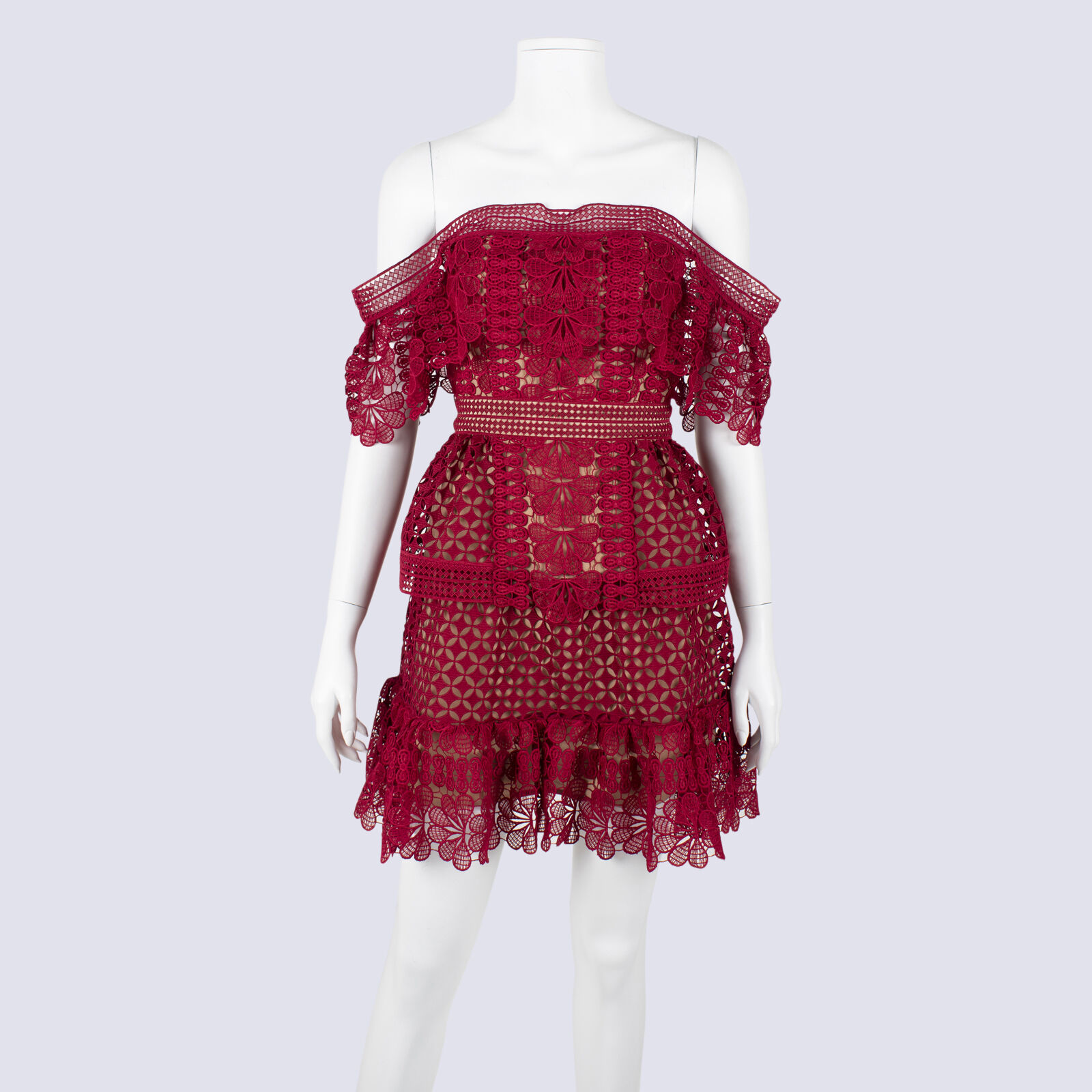 NWT Self Portrait Off Shoulder Red Lace Mini Dress