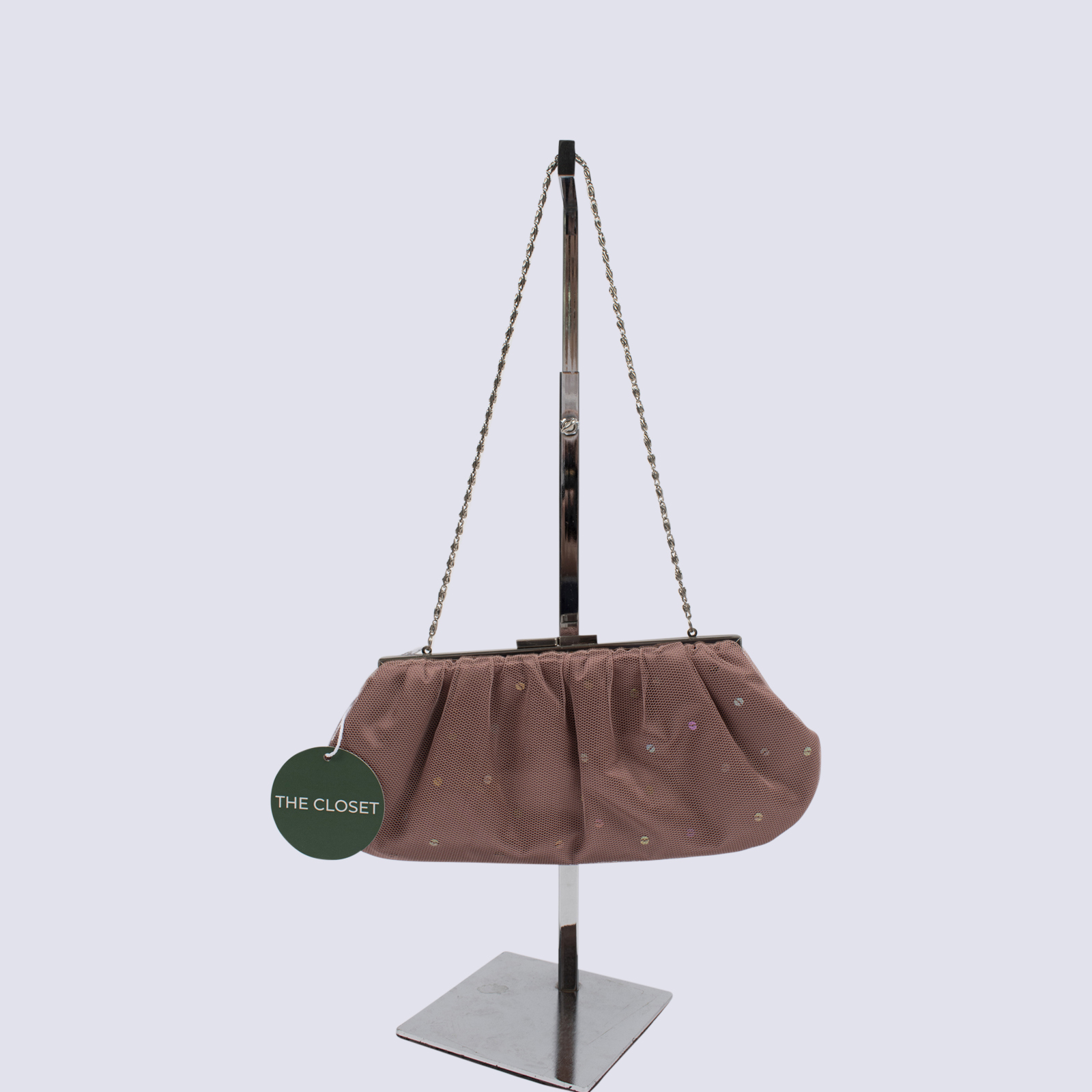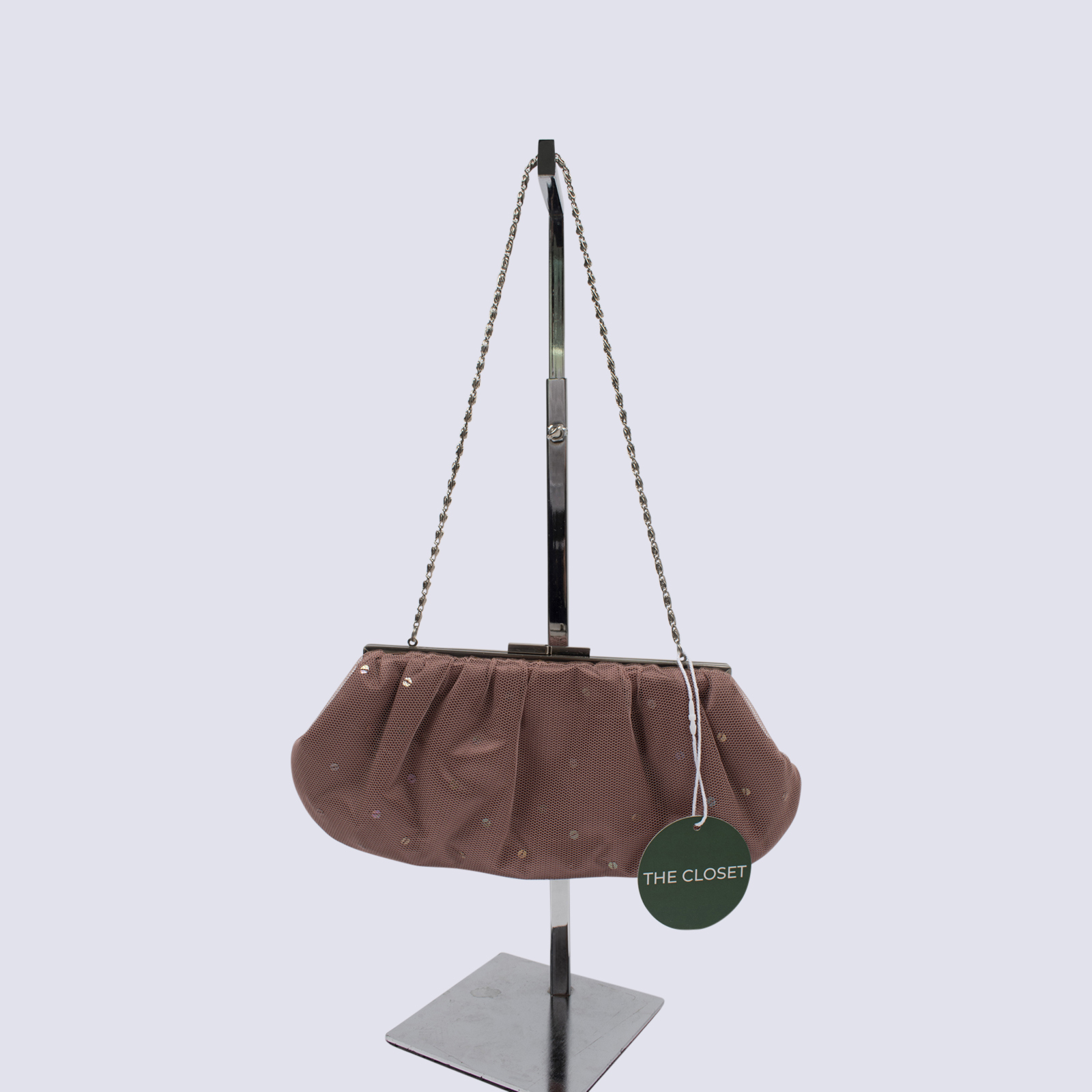 Ojay Rose Pink Clutch with Mesh Overlay