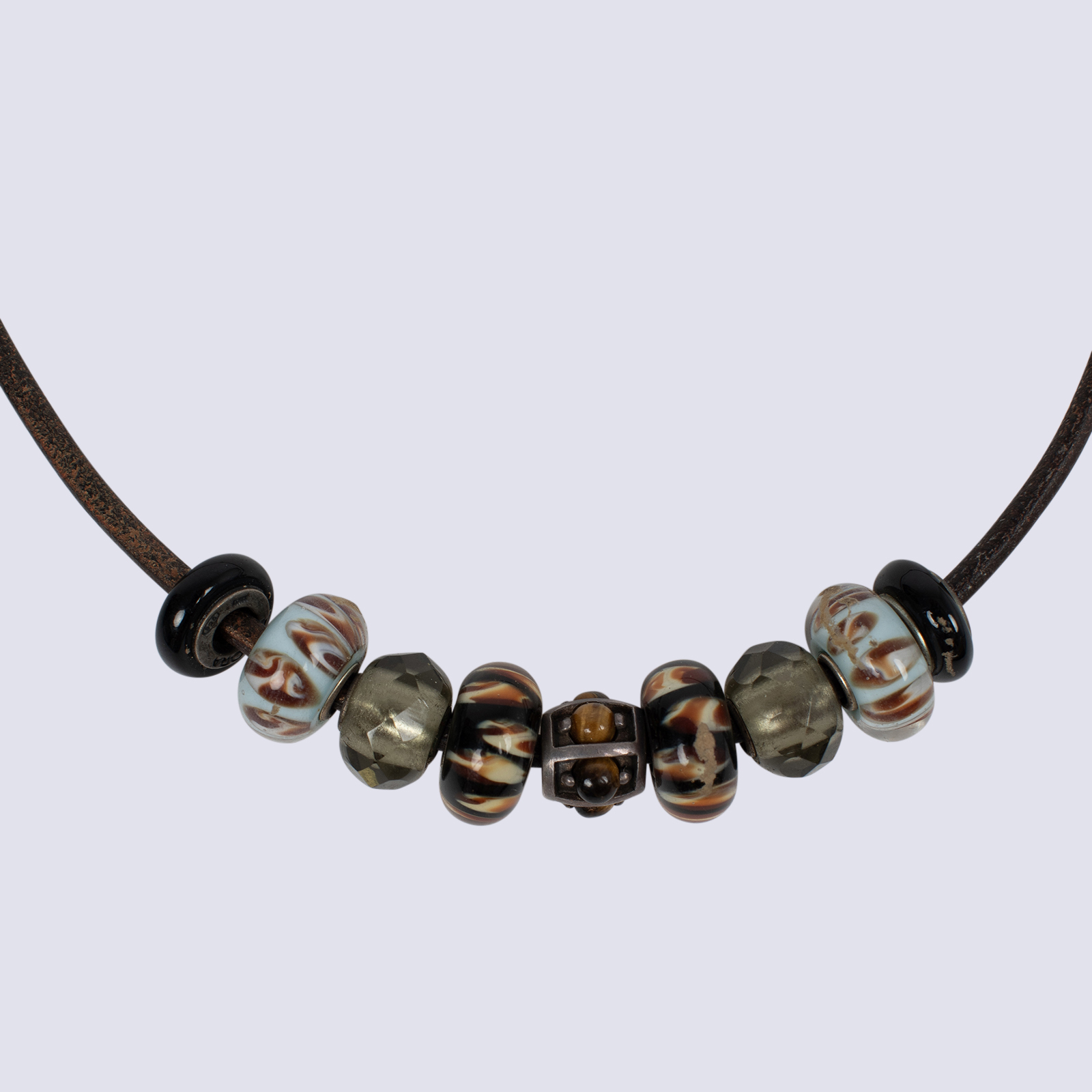 Pandora Brown Leather Choker W Nine Charms