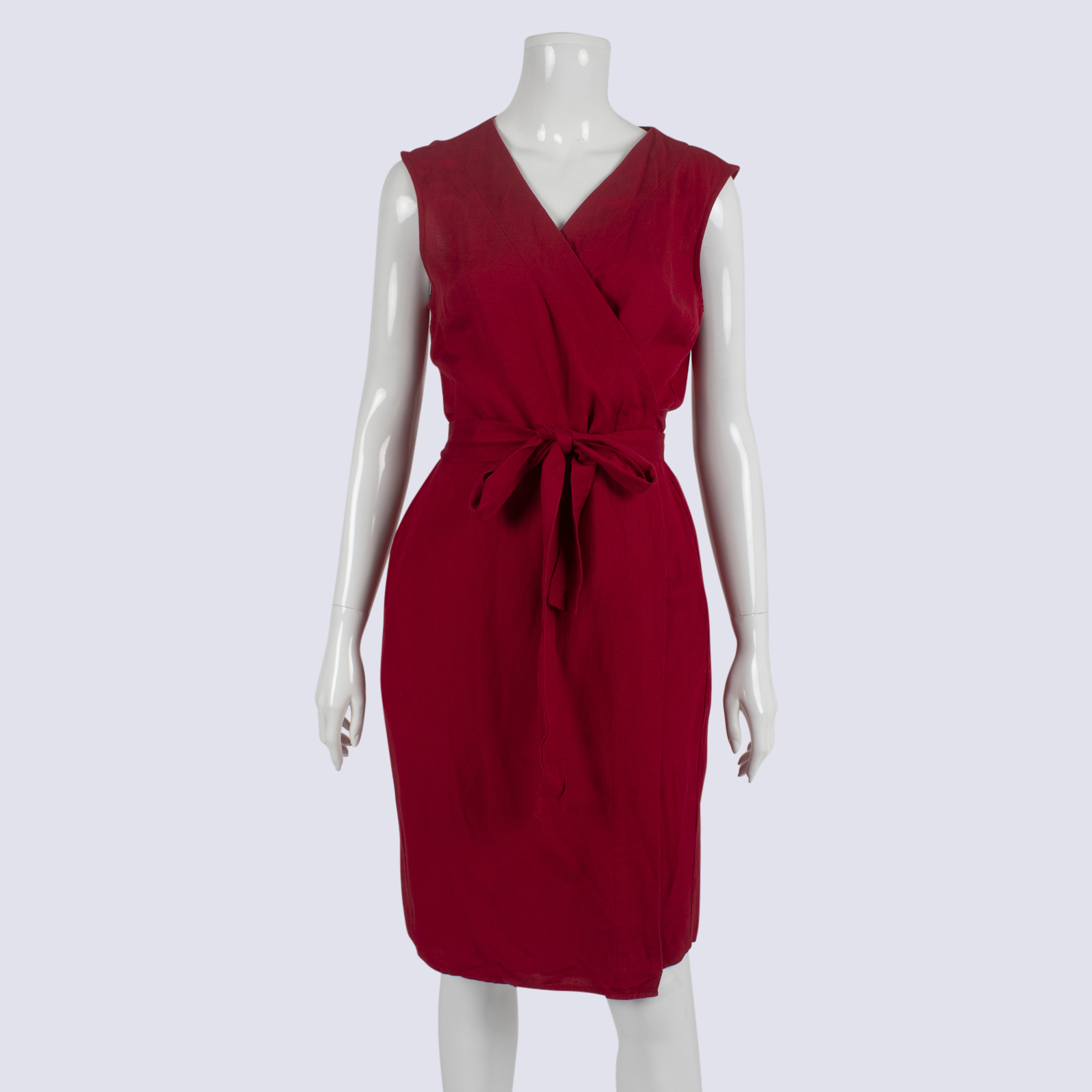 Princess Highway Red Linen Wrap Dress With Pockets