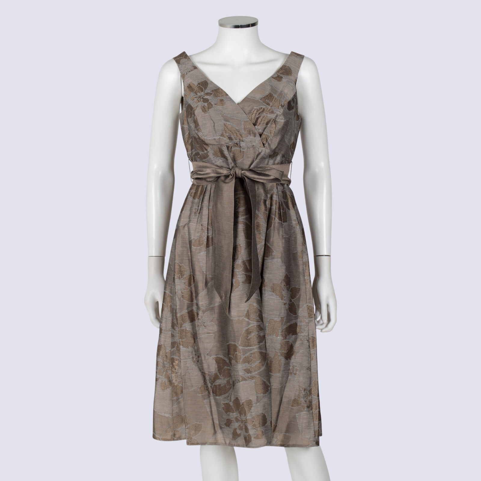 Principles Vintage V-neck Belted Sleeveless Dress With Pleats