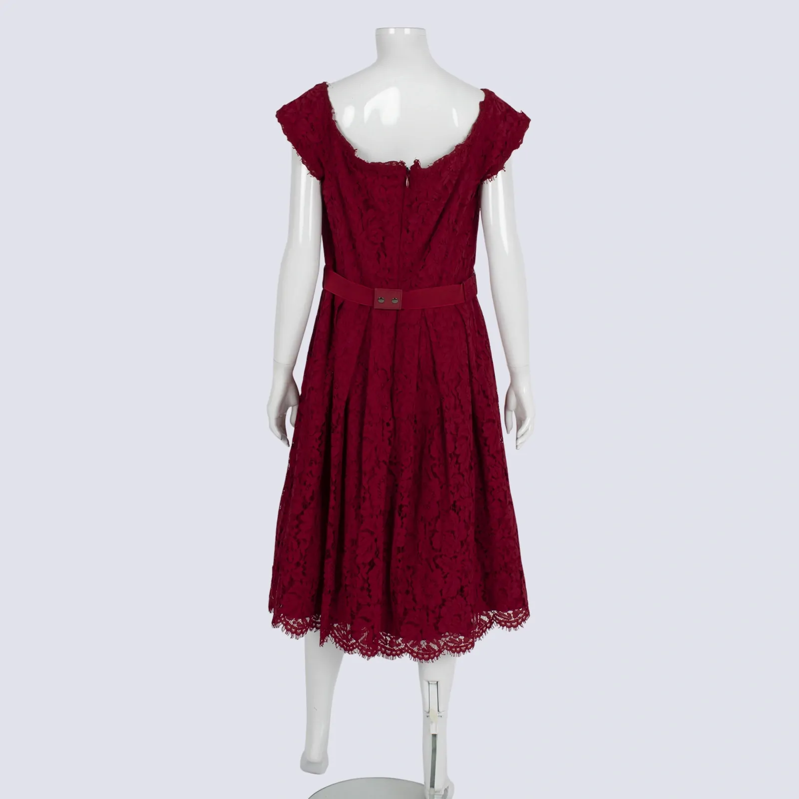 Red Lace Dress With Embellished Belt