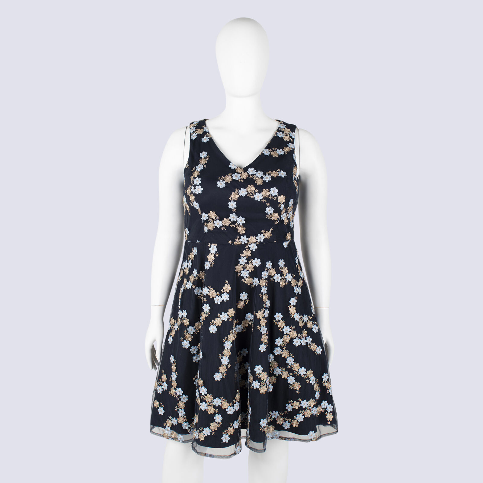 Review Navy Daisy Embroidered Fit 'n Flare Tulle Dress