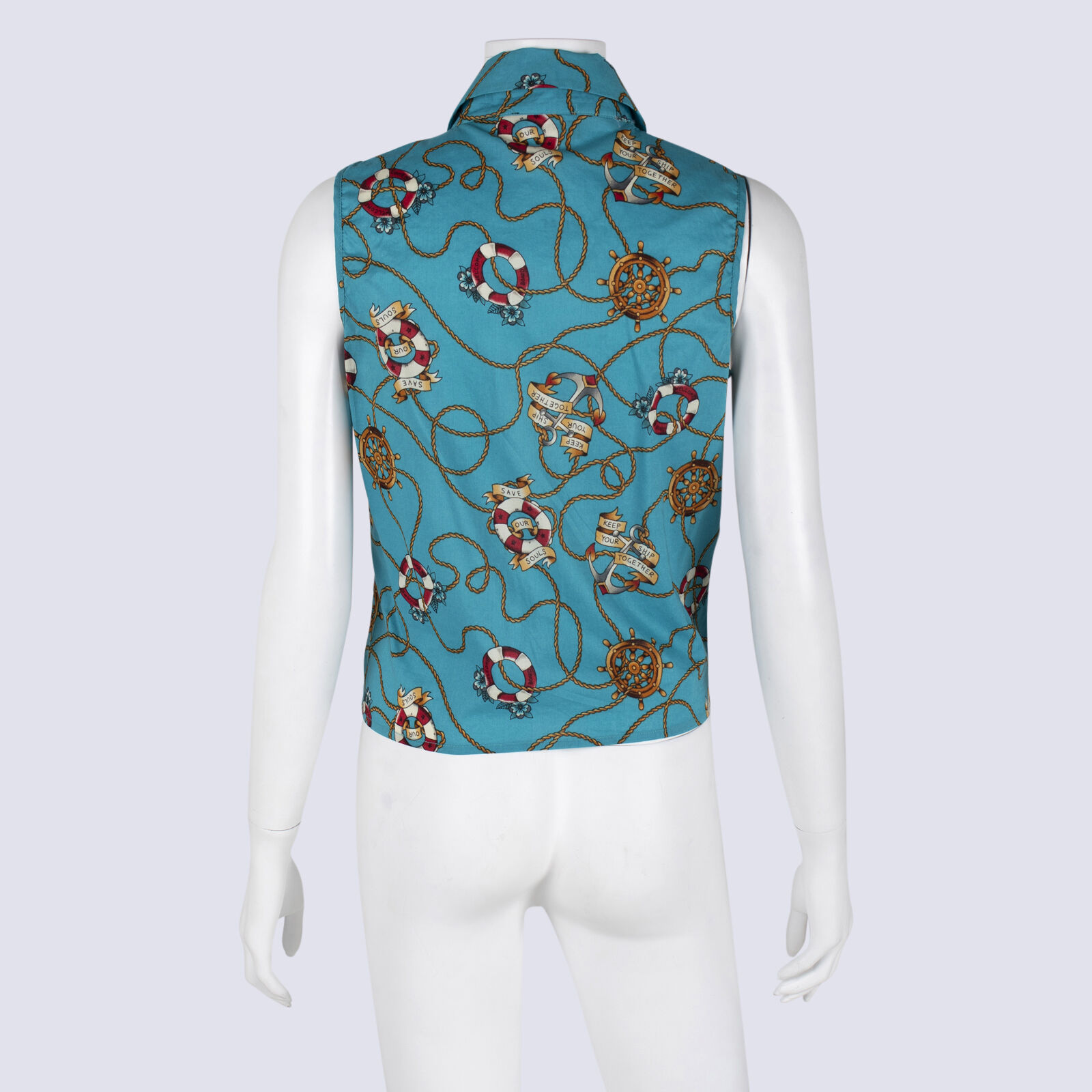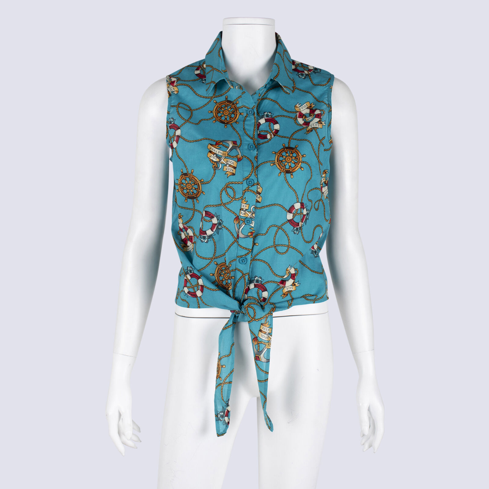 Revival Nautical Print Sleeveless Front TieTop