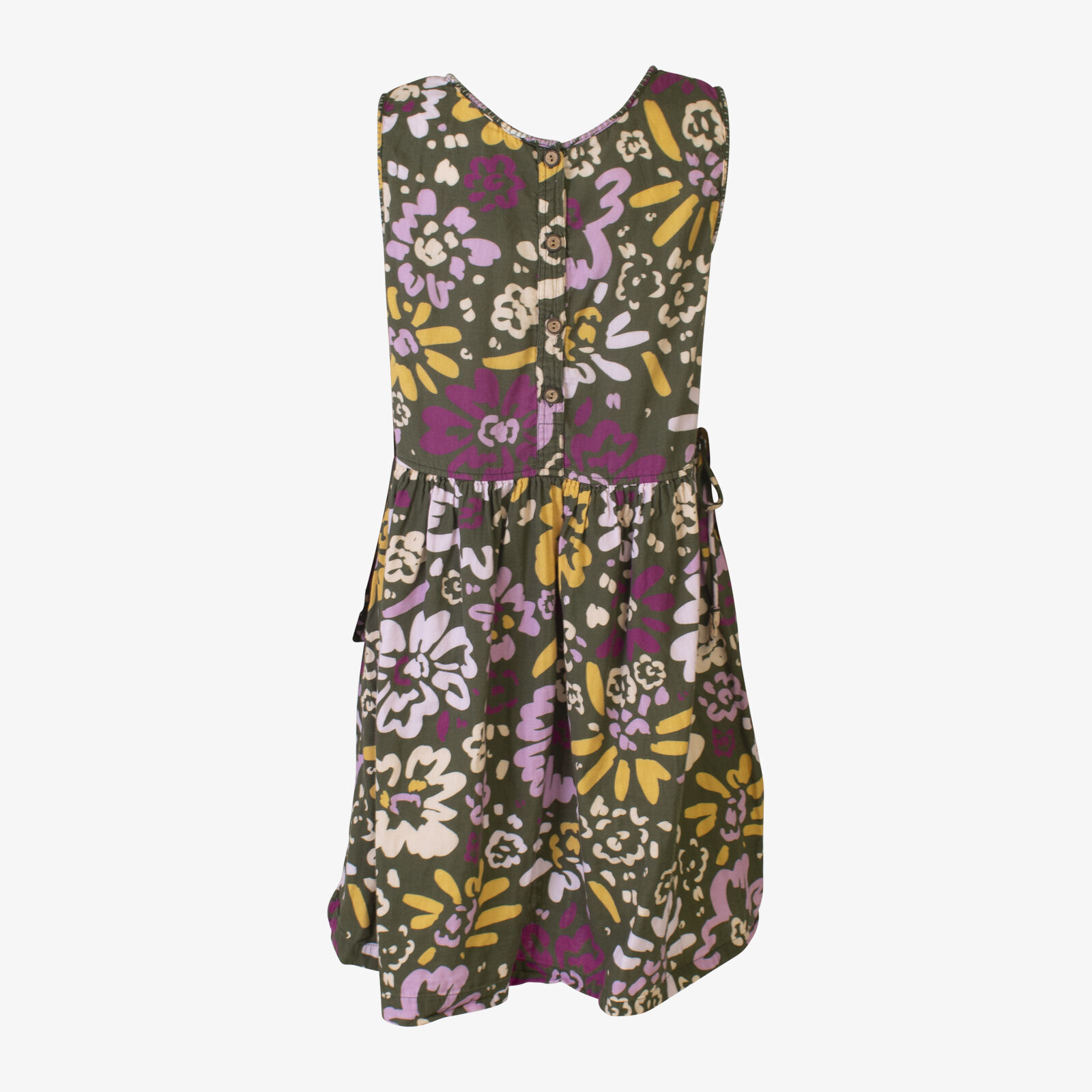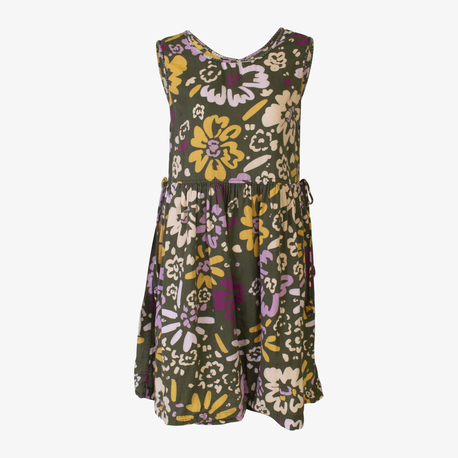 Sage + Claire Khaki Sleeveless Feature Stitch Floral Dress With Tie Waist