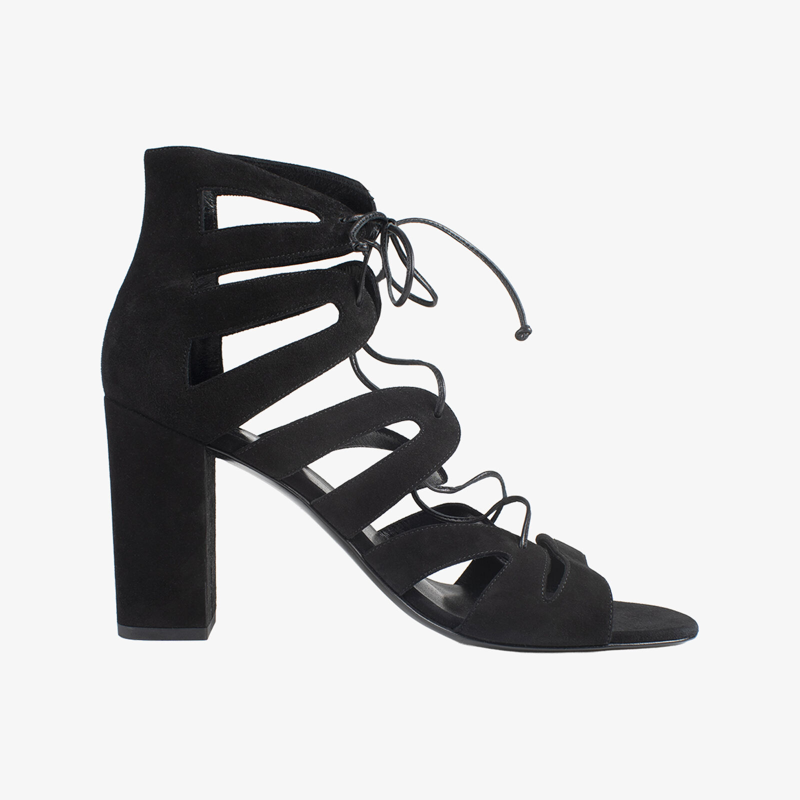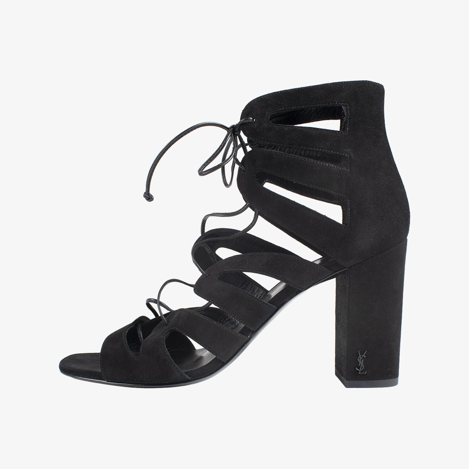 Saint Laurent Paris Black Suede Lace-Up Block Heels Style 457636 C20VV 1000