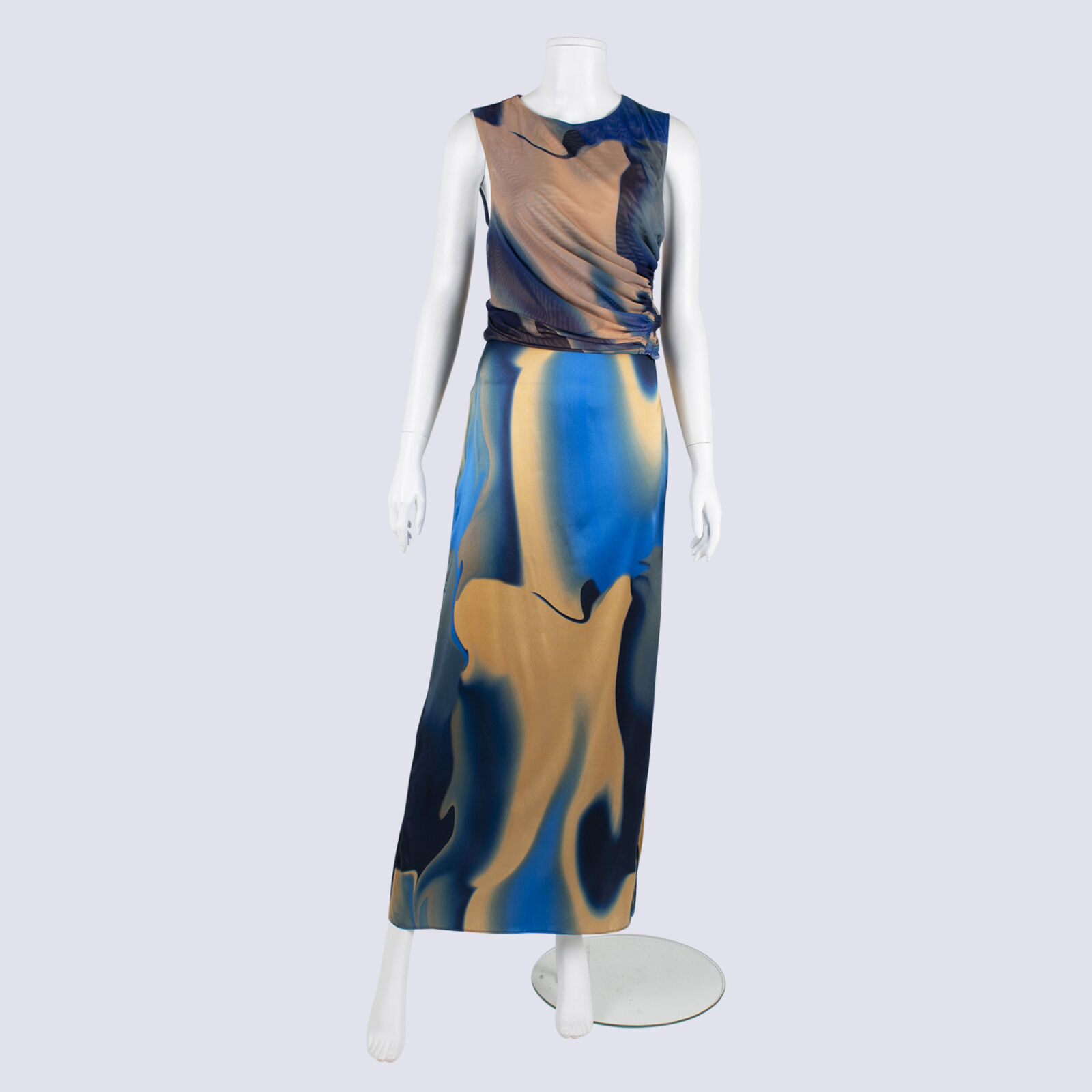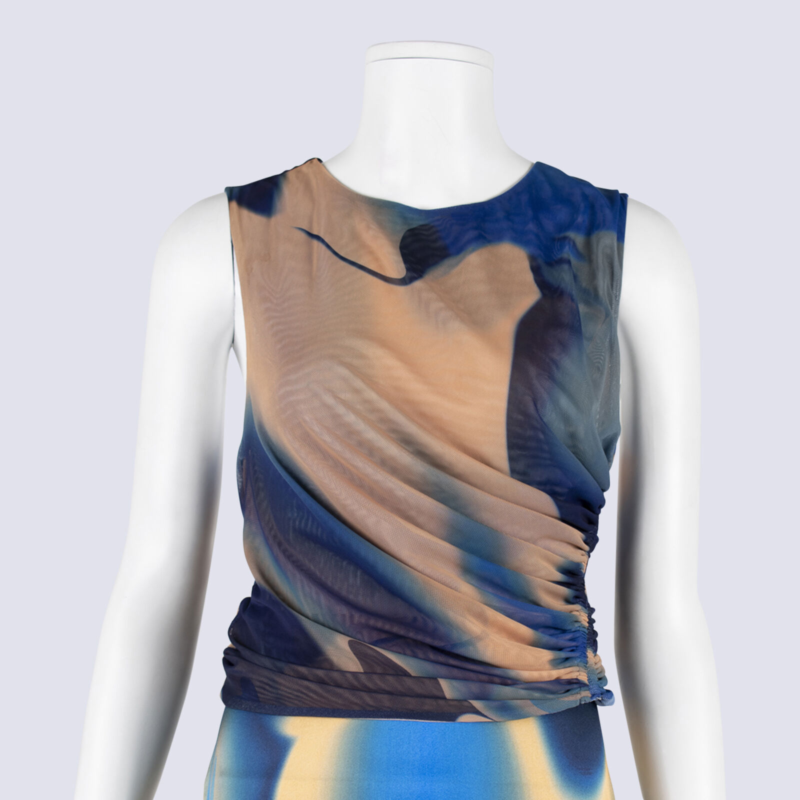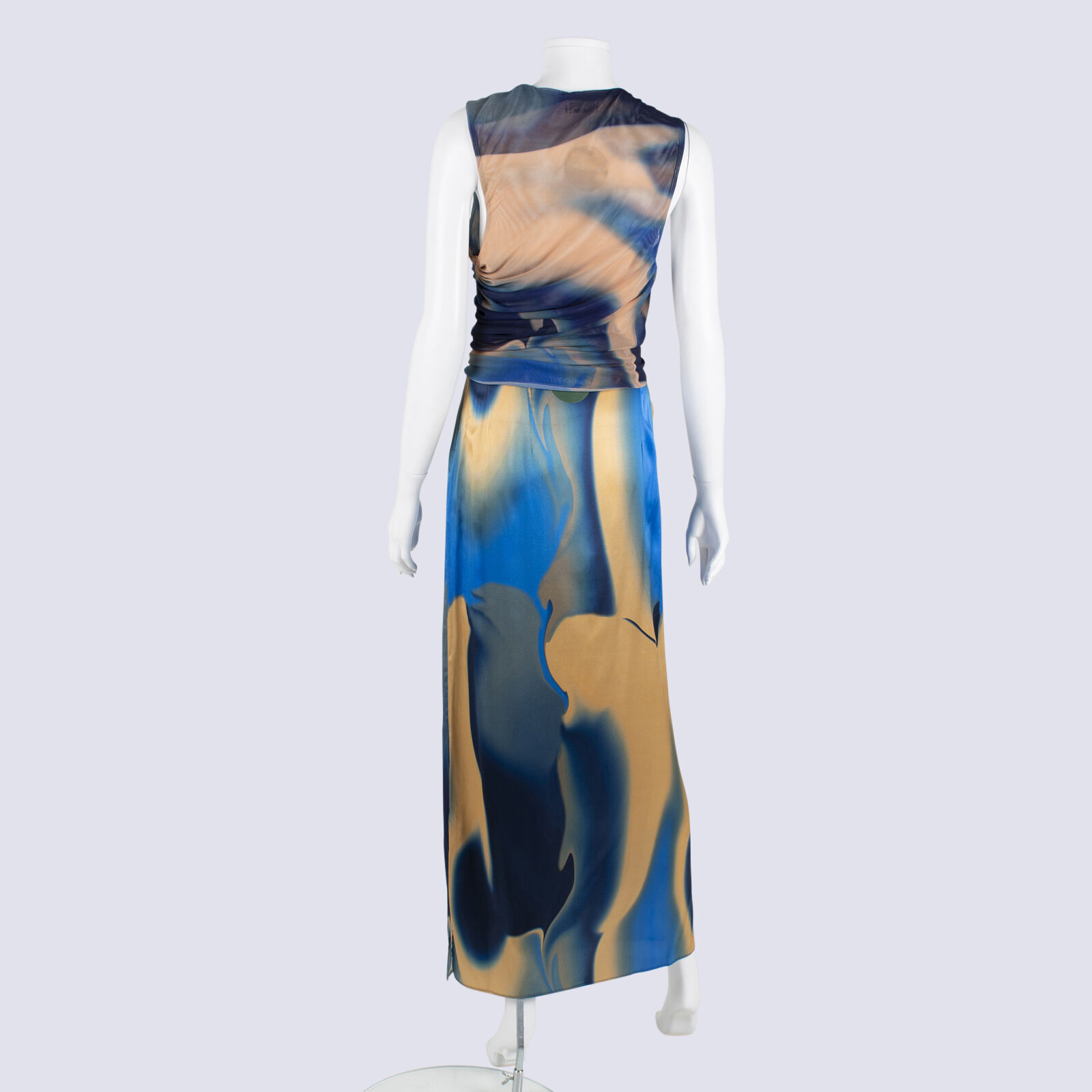 Scanlan Theodore Bias Silk Slip Skirt And Net Side Ruched TankTop