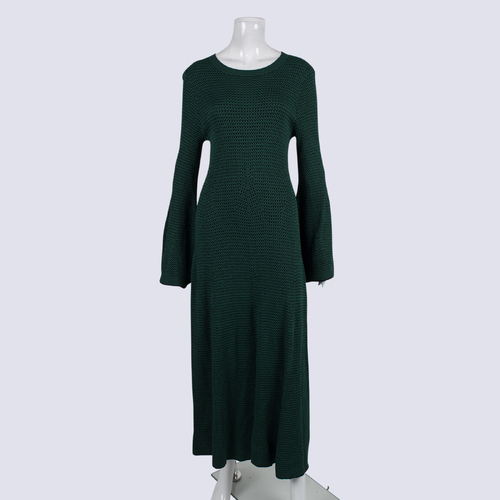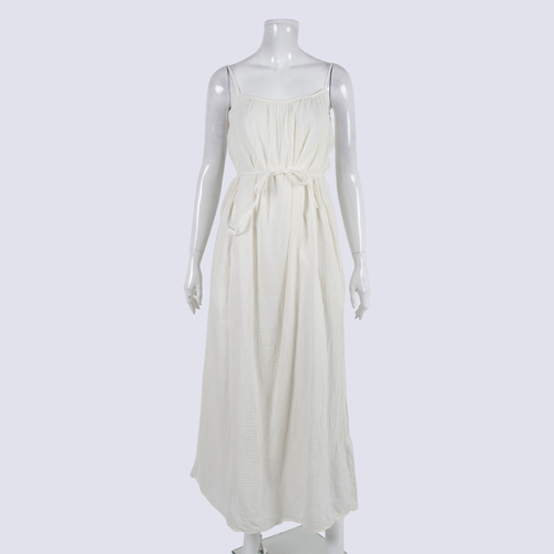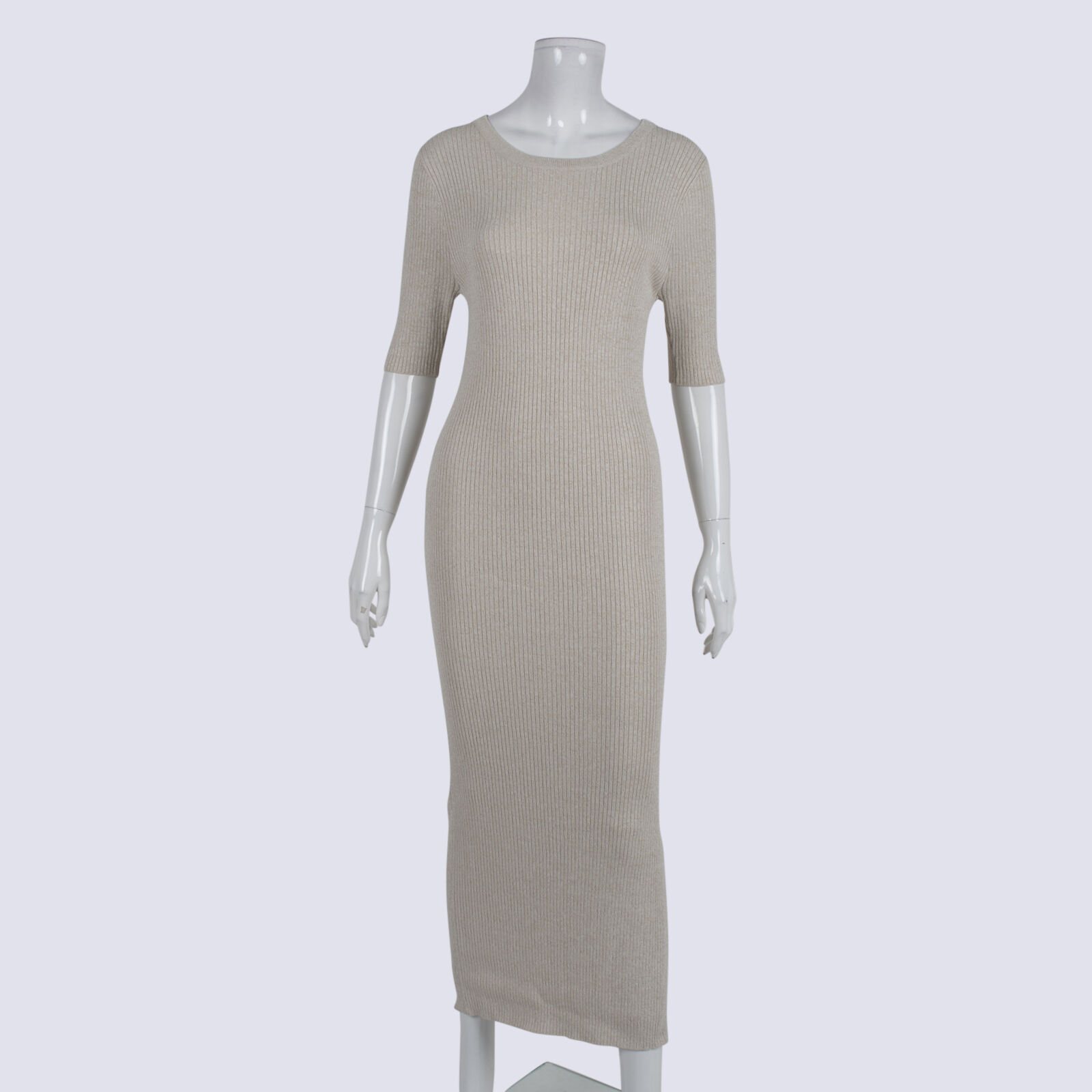 Seed Beige Knit Ribbed Short Sleeve Maxi Dress