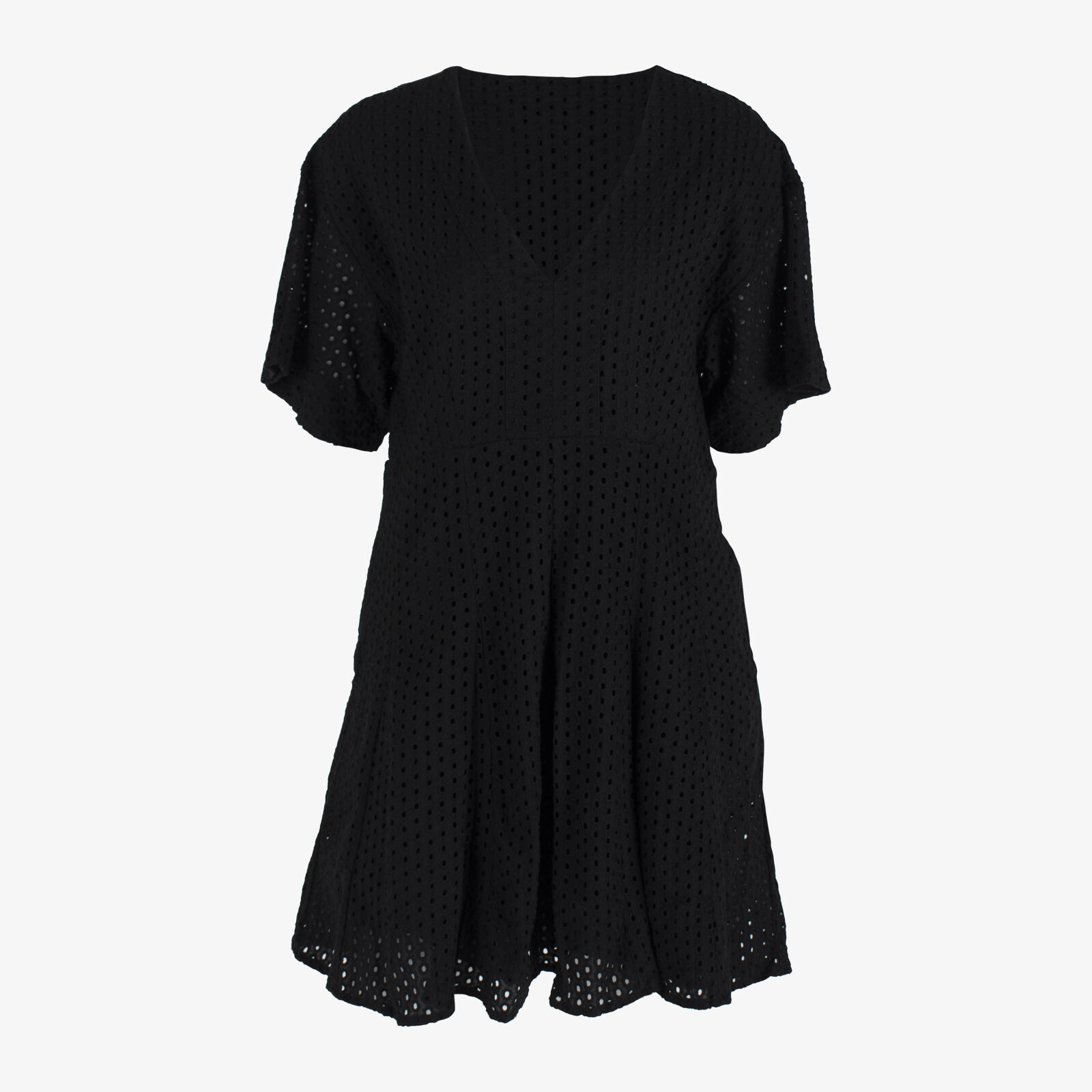 Seed Black V-neck Brodery Mini Dress
