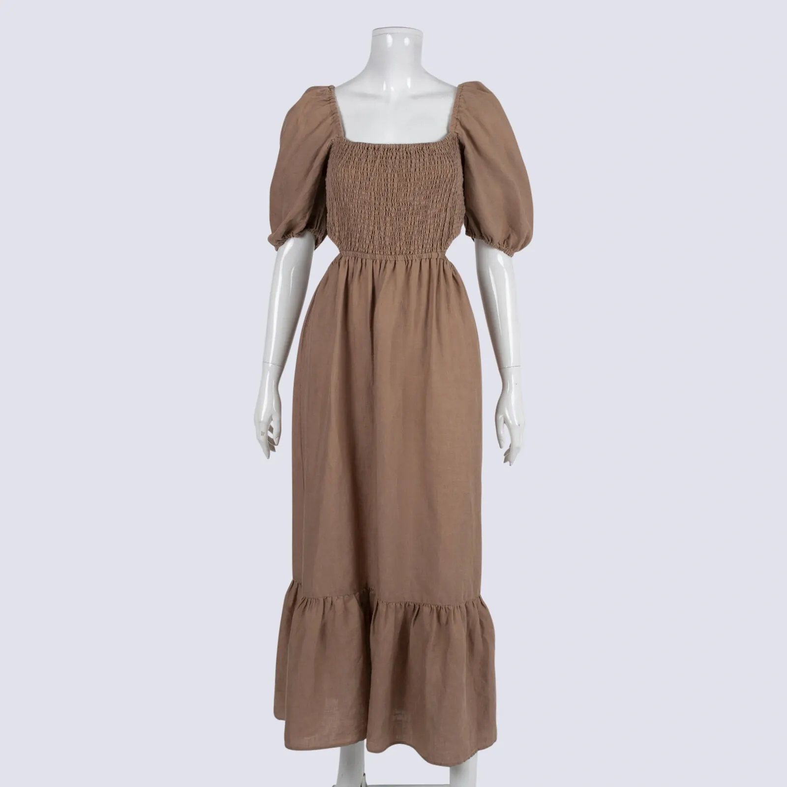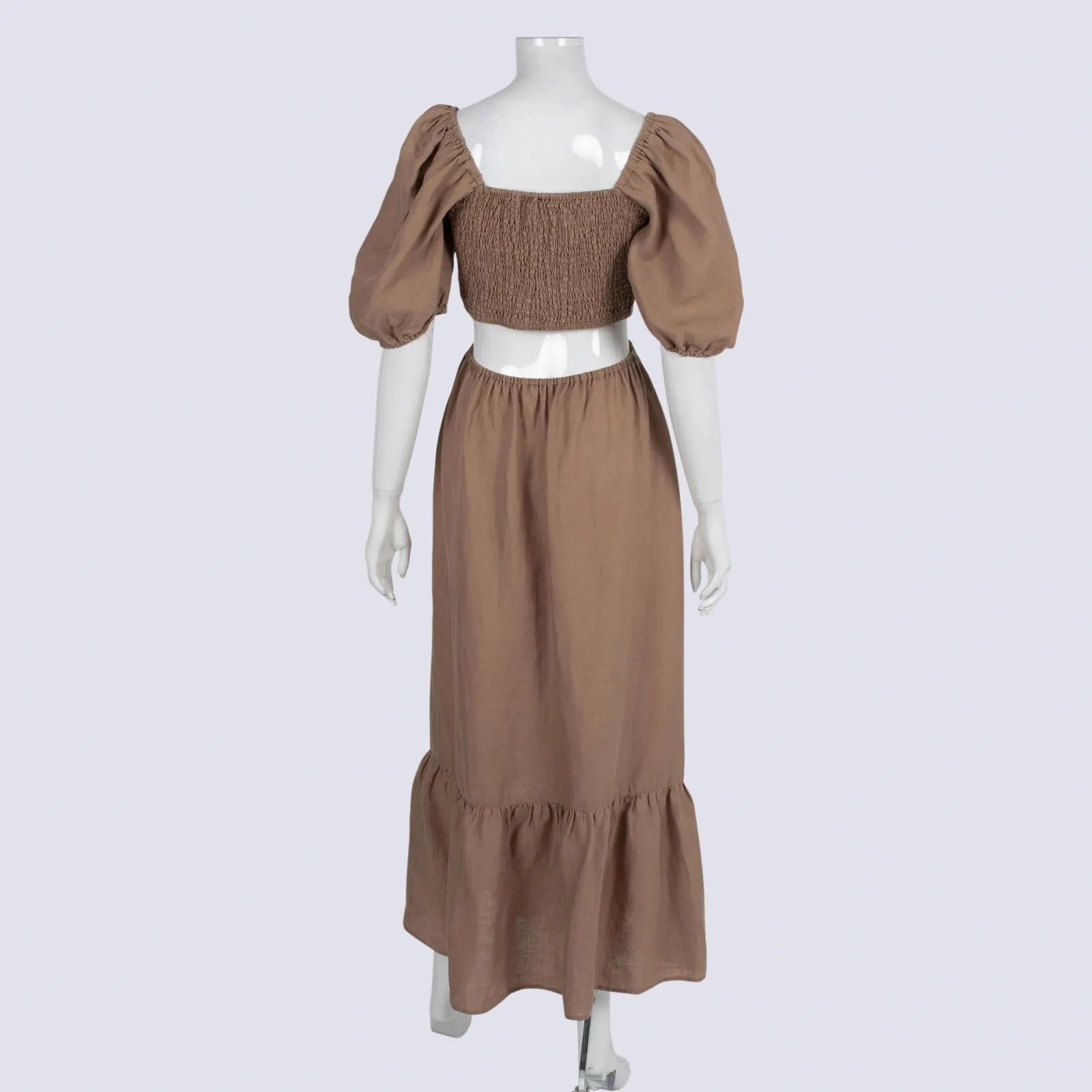 Seed Linen Puff Sleeve Cut-out Dress With Shirred Bodice
