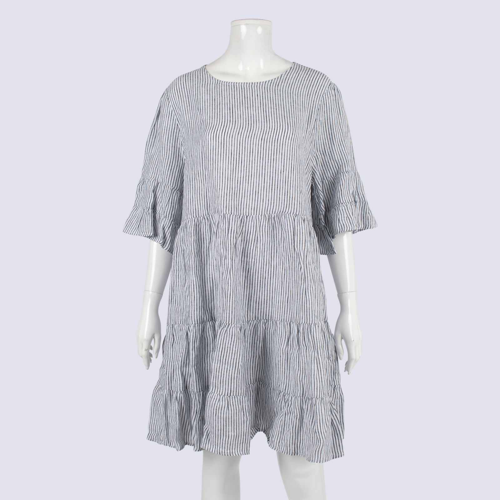 Seed Stripe Short Sleeve Linen Mini Dress
