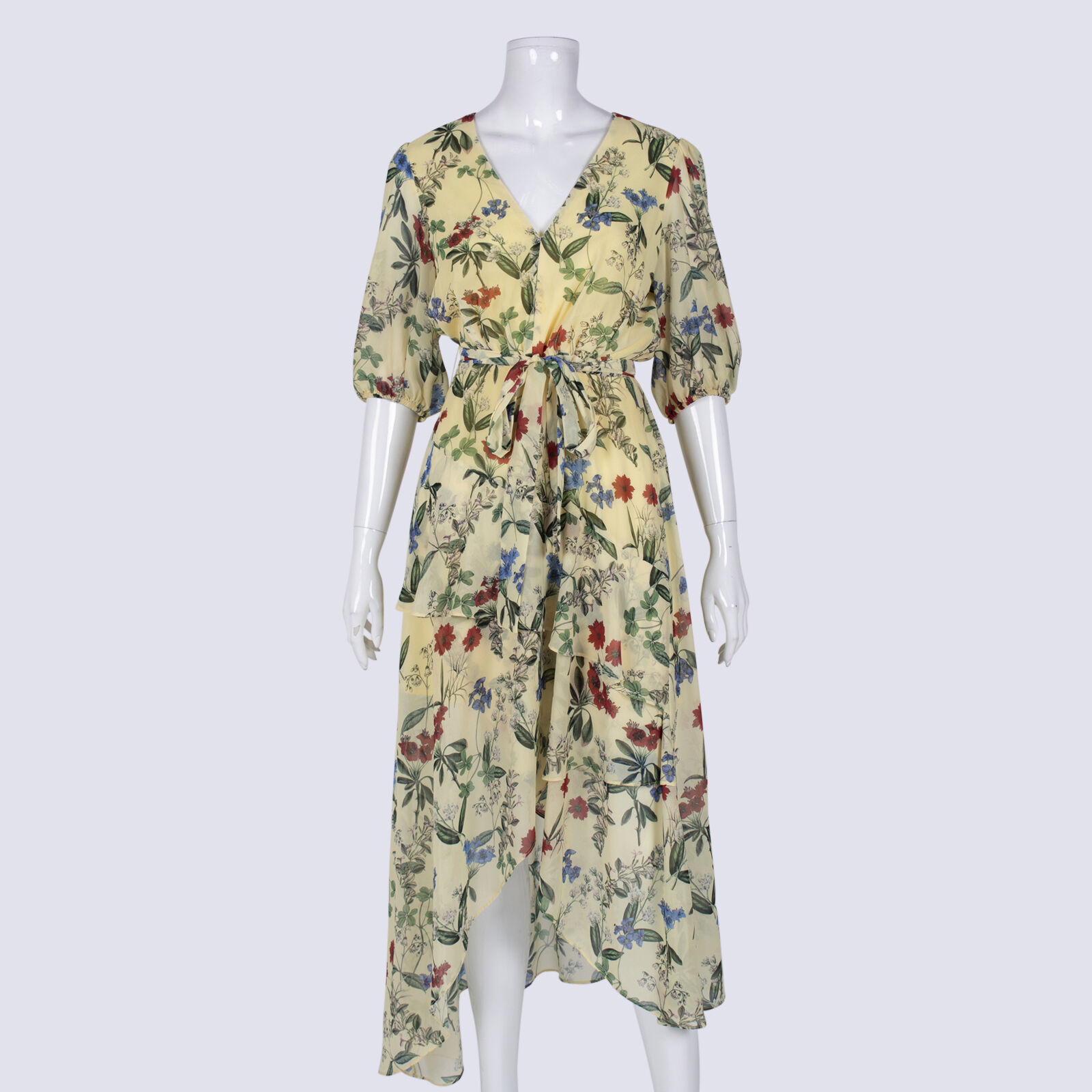 Sheike Sheer LS Faux Wrap Dress