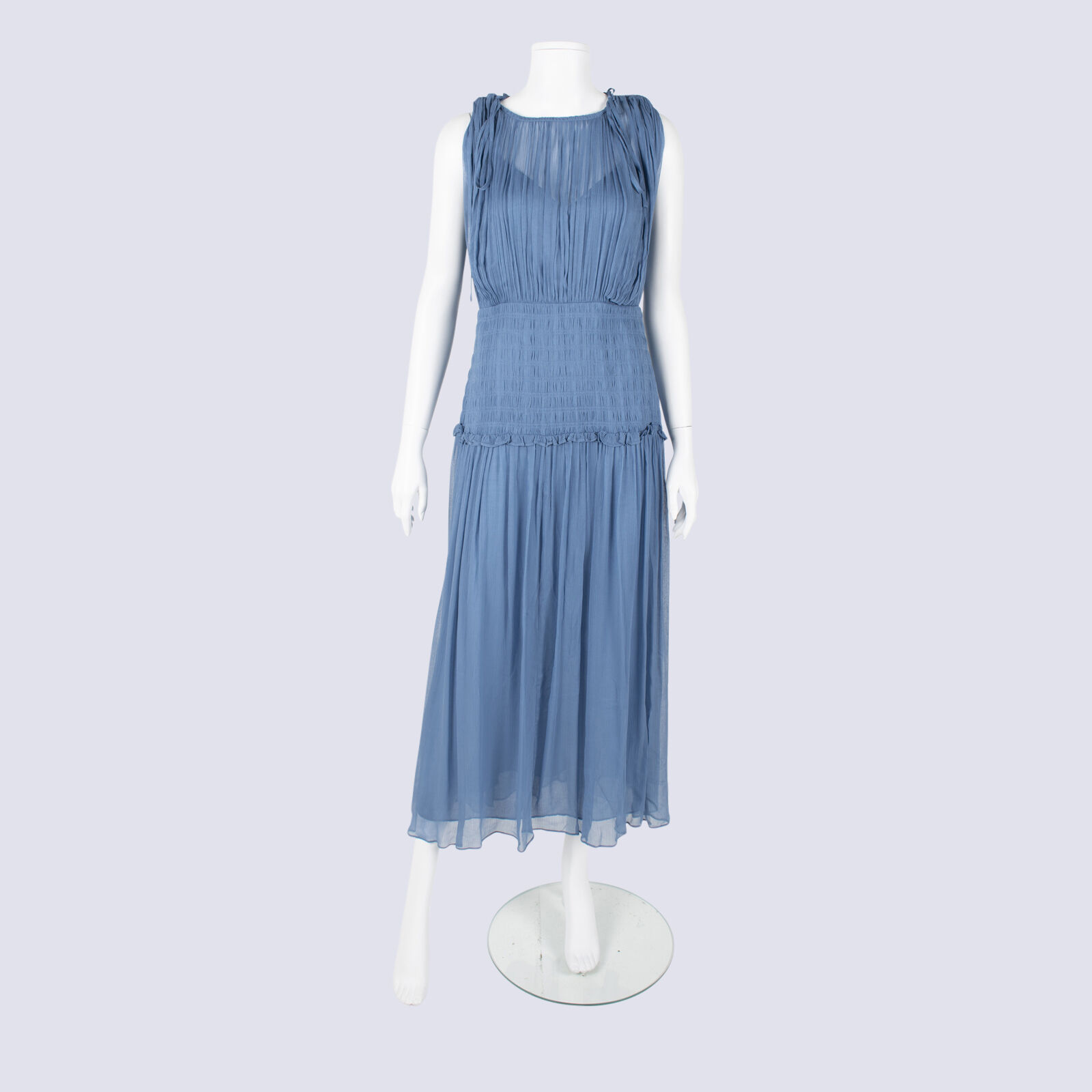Shona Joy Sheer Sleeveless Dress With Shirred Waist
