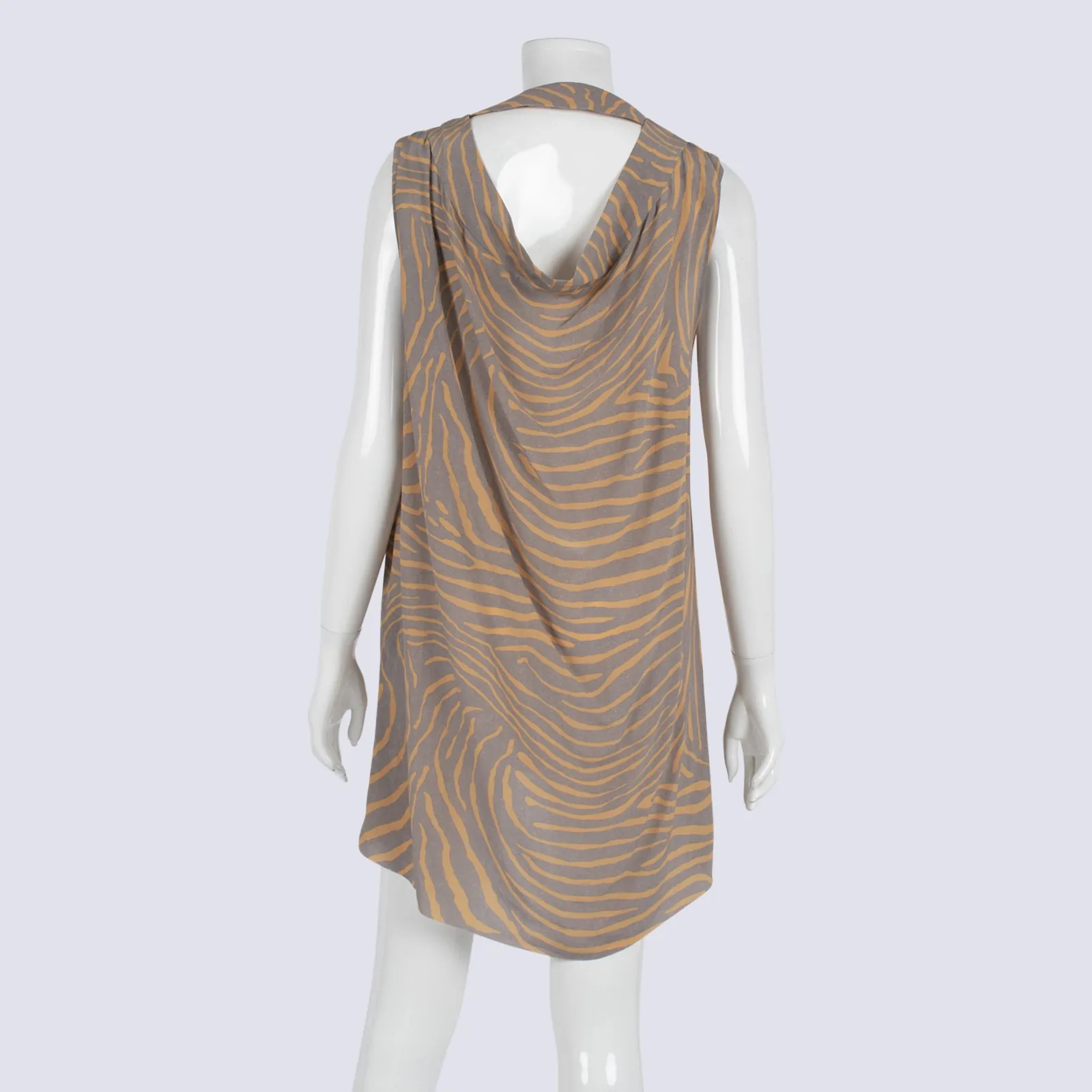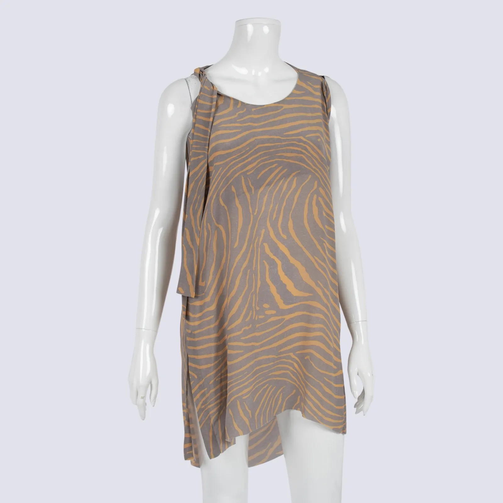 Silk Sleeveless Raw Hem Zebra Print Top