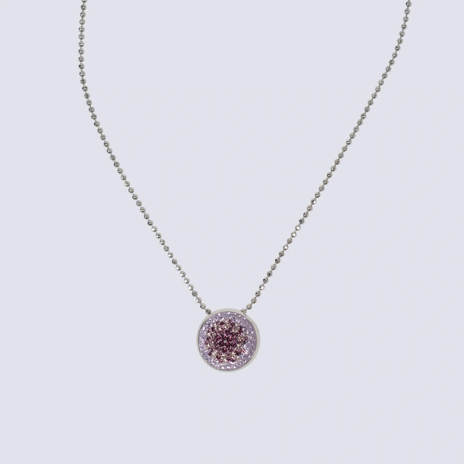 Siver Necklace With Lavender Disc Charm