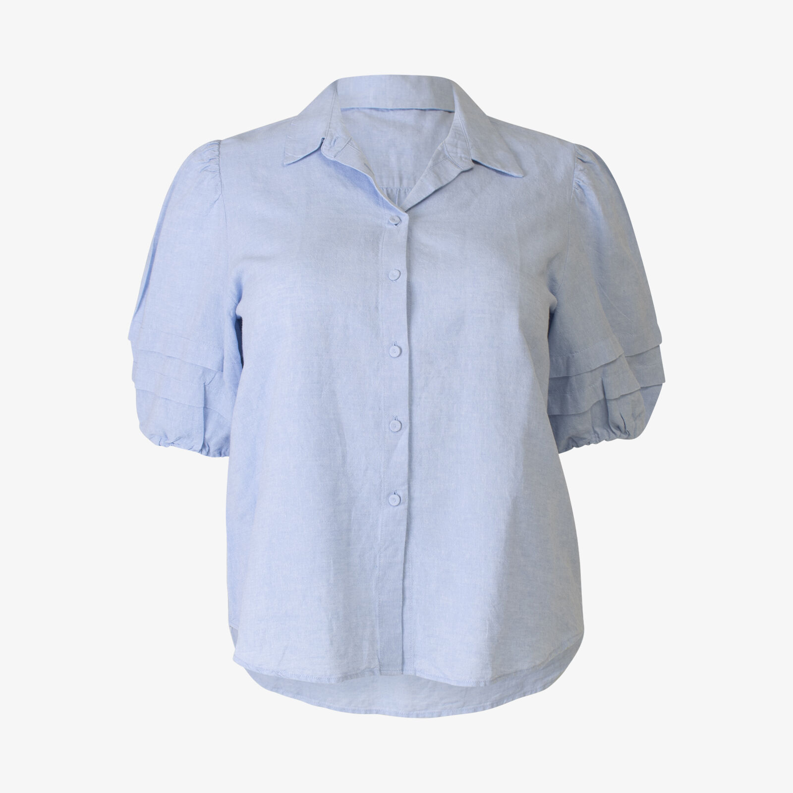 Sportscraft Pale Blue Linen Blend Puff Sleeve Shirt