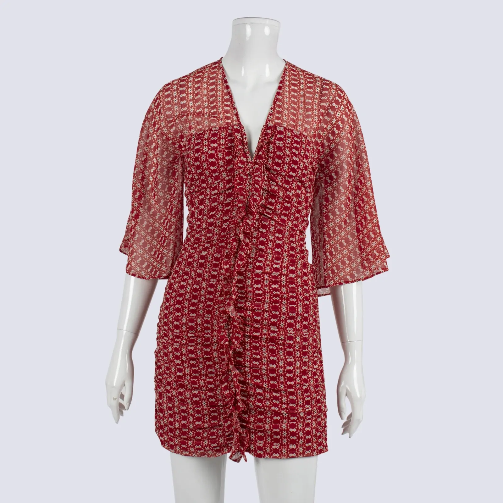 Stevie May Ruched Sheer Sleeve LS Dress