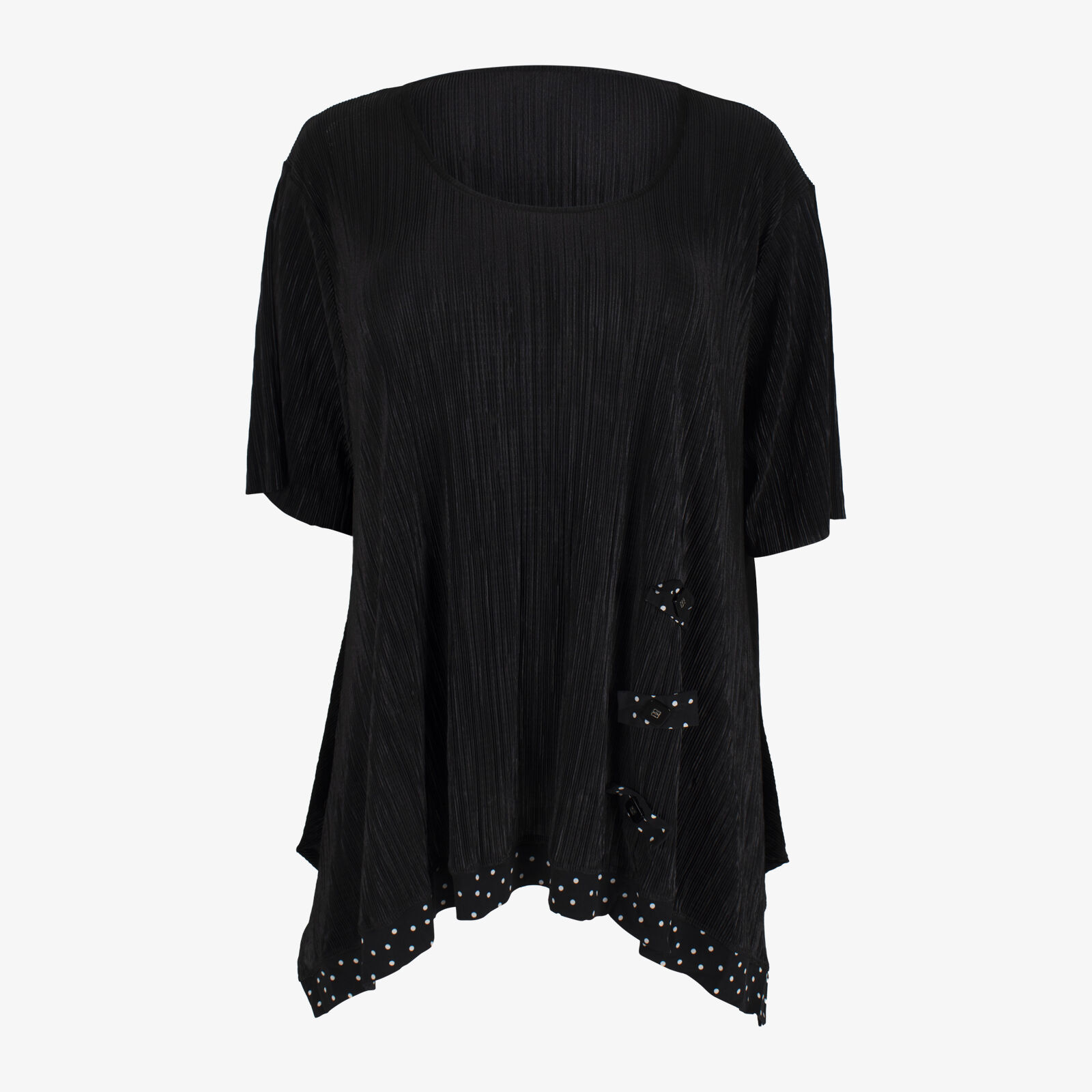 Taking Shape Black Pleat Fabric Short Sleeve Blouse With Spot Trim