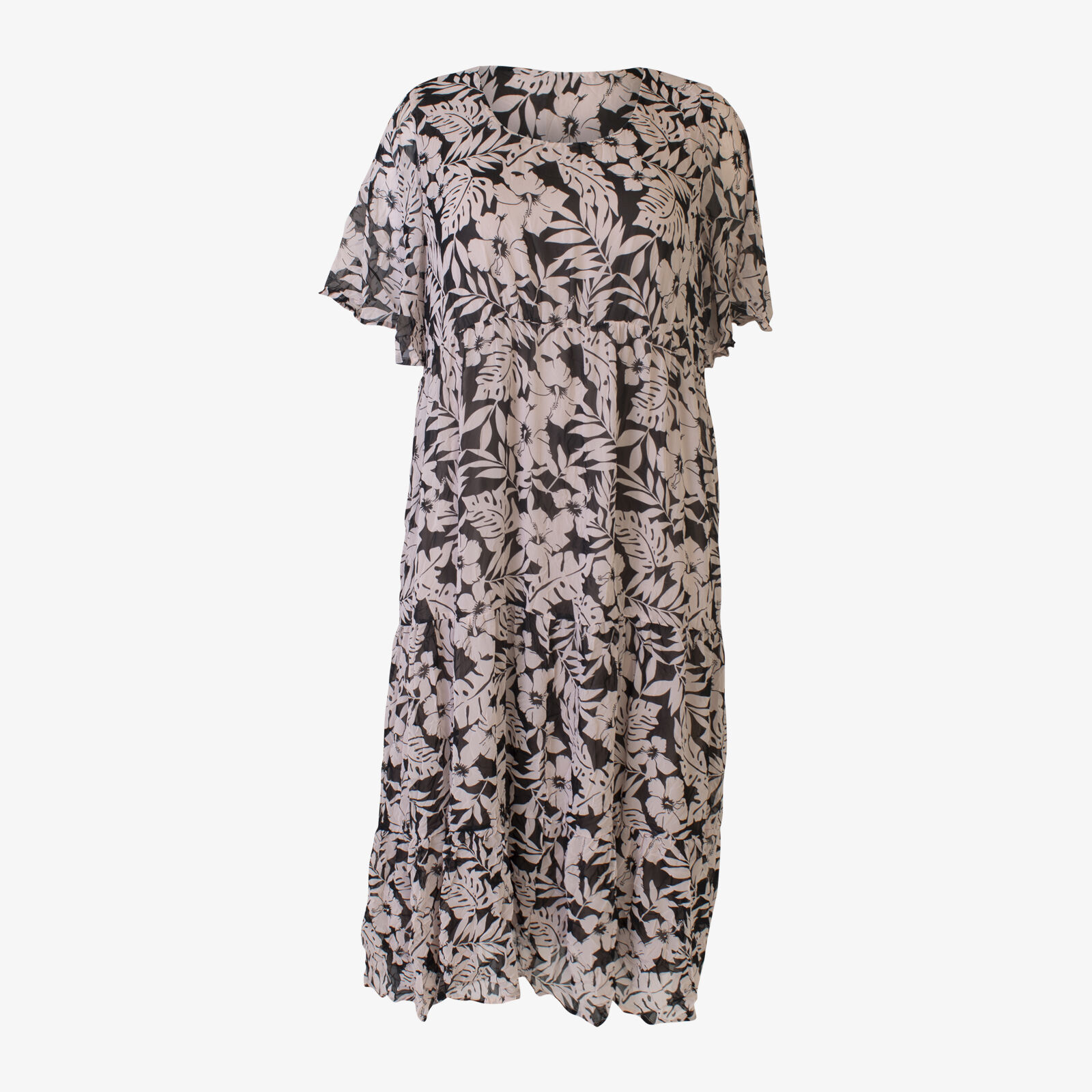 Taking Shape Floral Leaf Print Short Sleeve Chiffon Dress